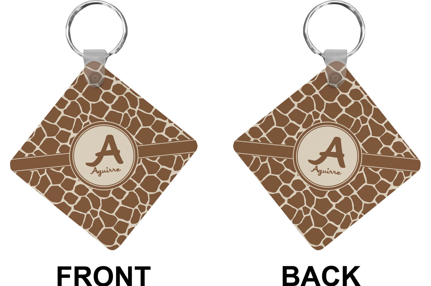 Our personalized keychains attach to the included metal, split key ring with a plastic, removable snap. Since a metal ring is included with your purchase, you have the liberty to keep your keys together on the ring, with or without your unique keychain. We offer this keychain in three different shapes: circle, heart, or diamond. We print your personalized design(s) on both sides of the key chain, and the surface has a glossy, reflective finish that only emphasizes your design. Each keychain is approximately 2.25 by 2.25 inches.