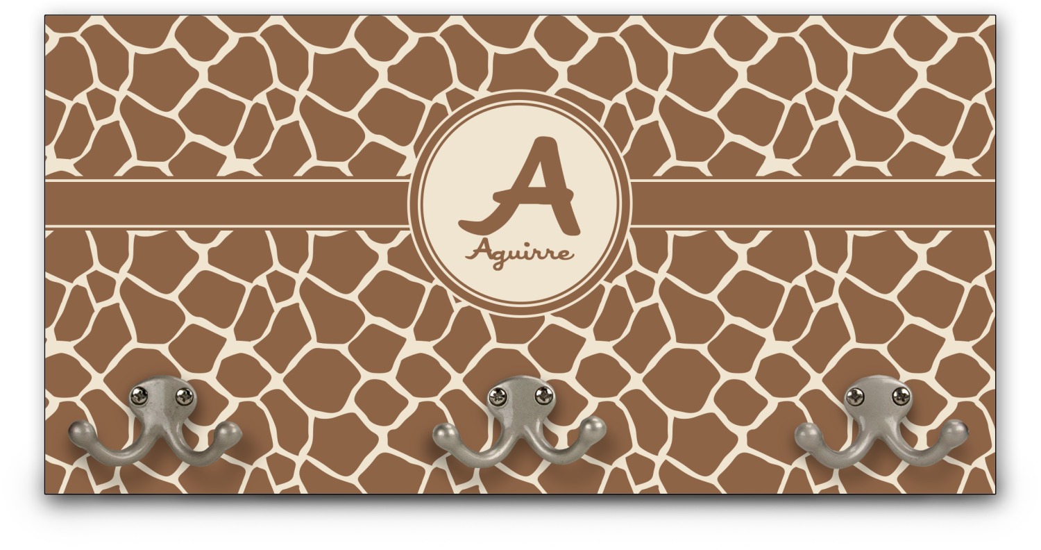 This coat rack is the perfect way to add some personality to your wall or entryway. The board is made of a strong maple that is approximately 16" x 8". The three 2-prong hooks are a sturdy metal that have three screws attaching them to the board. Your design is printed right onto the front of the board while the back and sides are a simple black.
