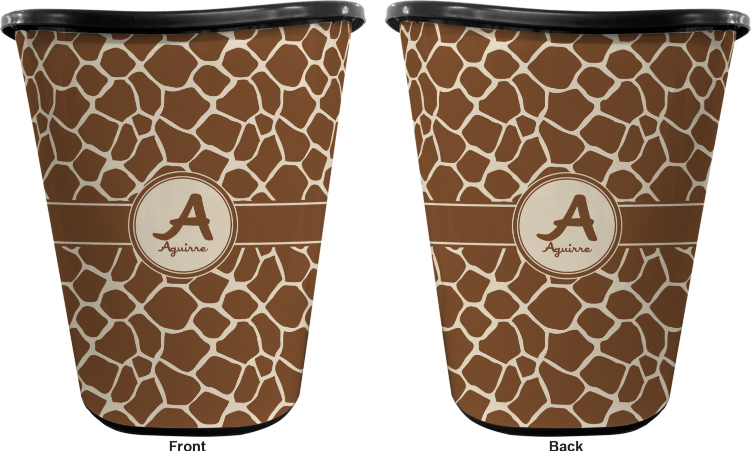 You can choose to purchase these decorative wastebaskets in either a white or a black color that will show on the base and the upper rim. Your customization is printed on a high-gloss, fine-quality vinyl adhesive, and you can choose to either have this adhesive applied to one side only or to both sides. As such, this plastic wastebasket can be single-sided or double-sided, depending on your creative vision. Your customization is printed using durable inks, making the design waterproof and resistant to fading over time.
