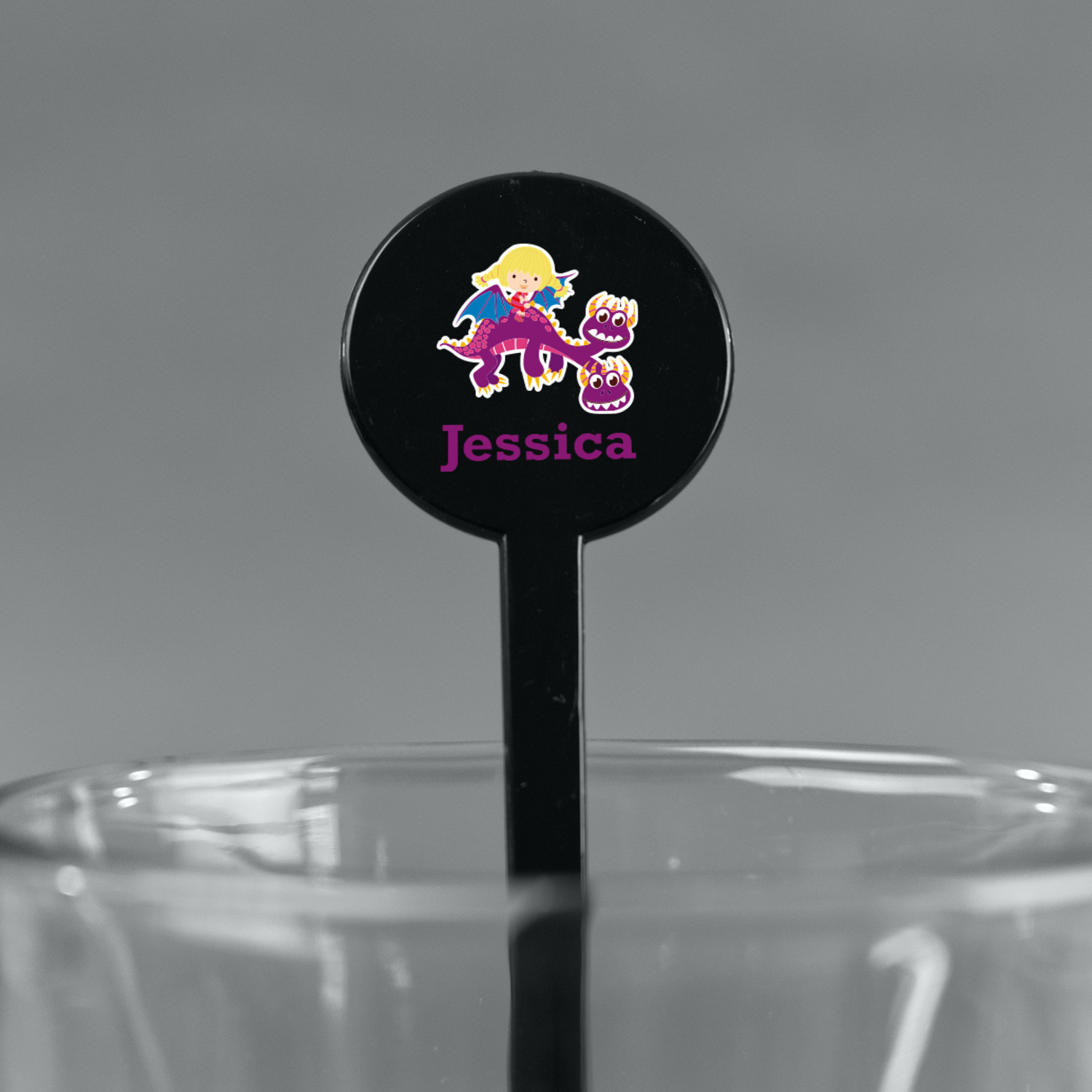 Sky Designs for 7" Round Plastic Stir Sticks - Black - Single-Sided