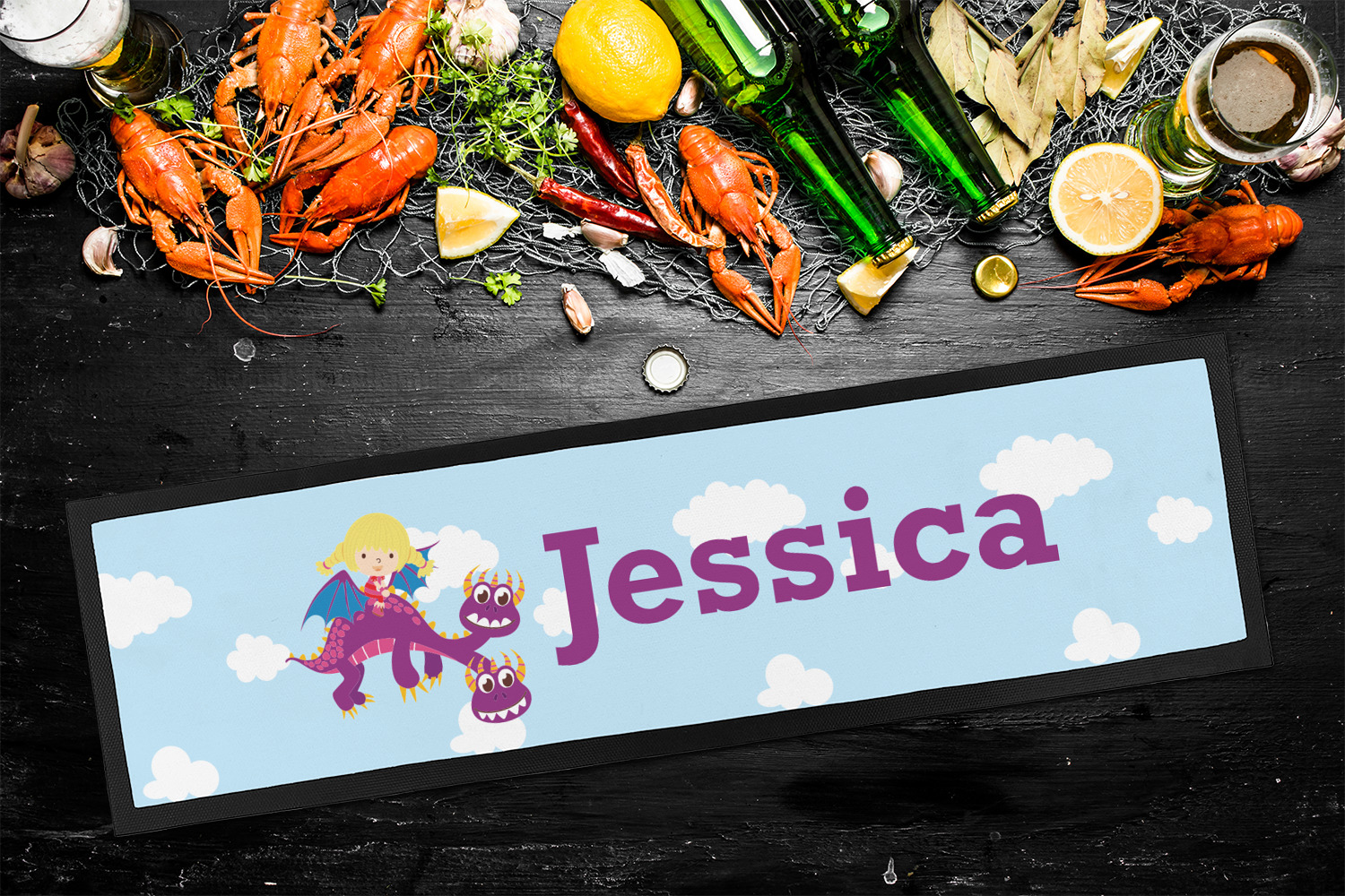 What little girl doesn't want to tame her own dragon? Open her imagination with this adorable design showing your little girl flying through a beautiful blue cloudy sky on her own dragon.
