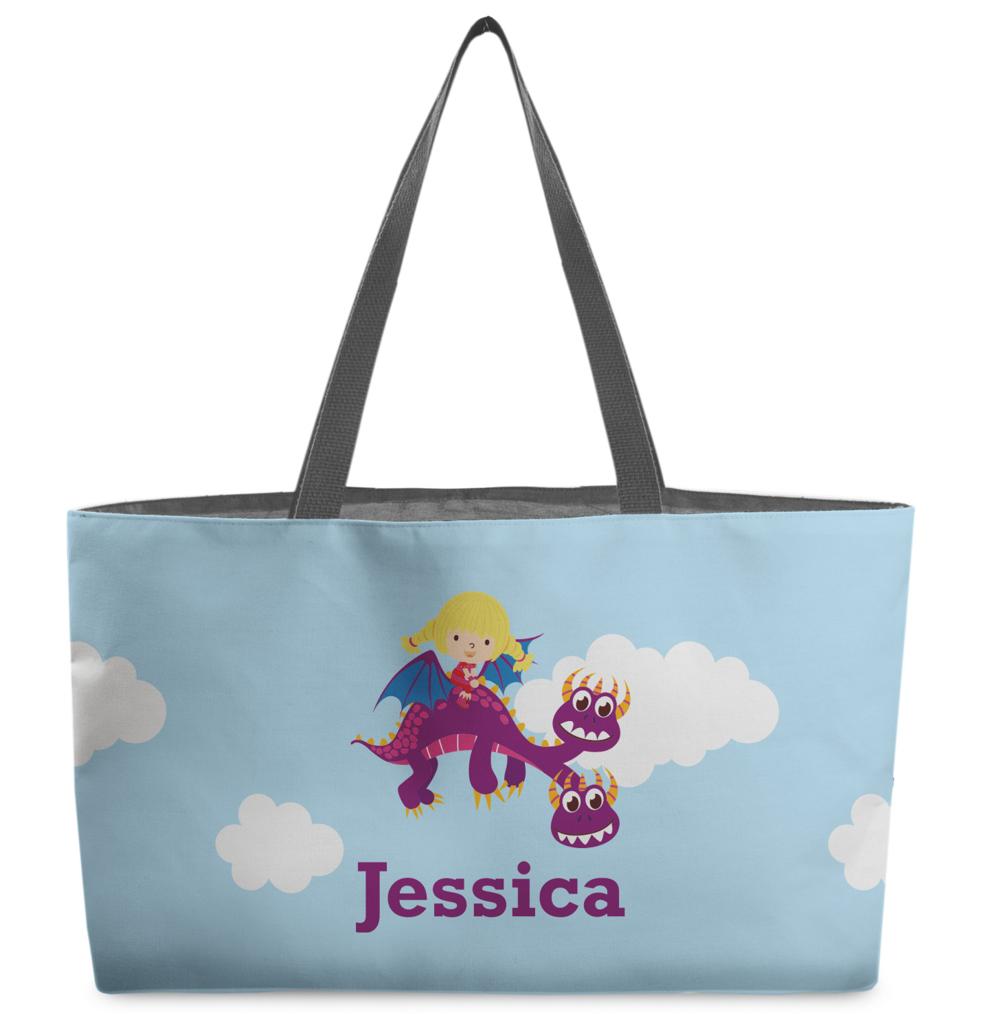 These beach totes are handmade here in the USA. Fabric is printed with your design. The tote is then sewn from the fabric pieces, lining and handles added.
