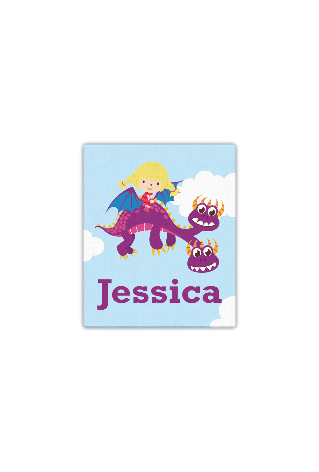 What little girl doesn't want to tame her own dragon? Open her imagination with this adorable design showing your little girl flying through a beautiful blue cloudy sky on her own dragon.