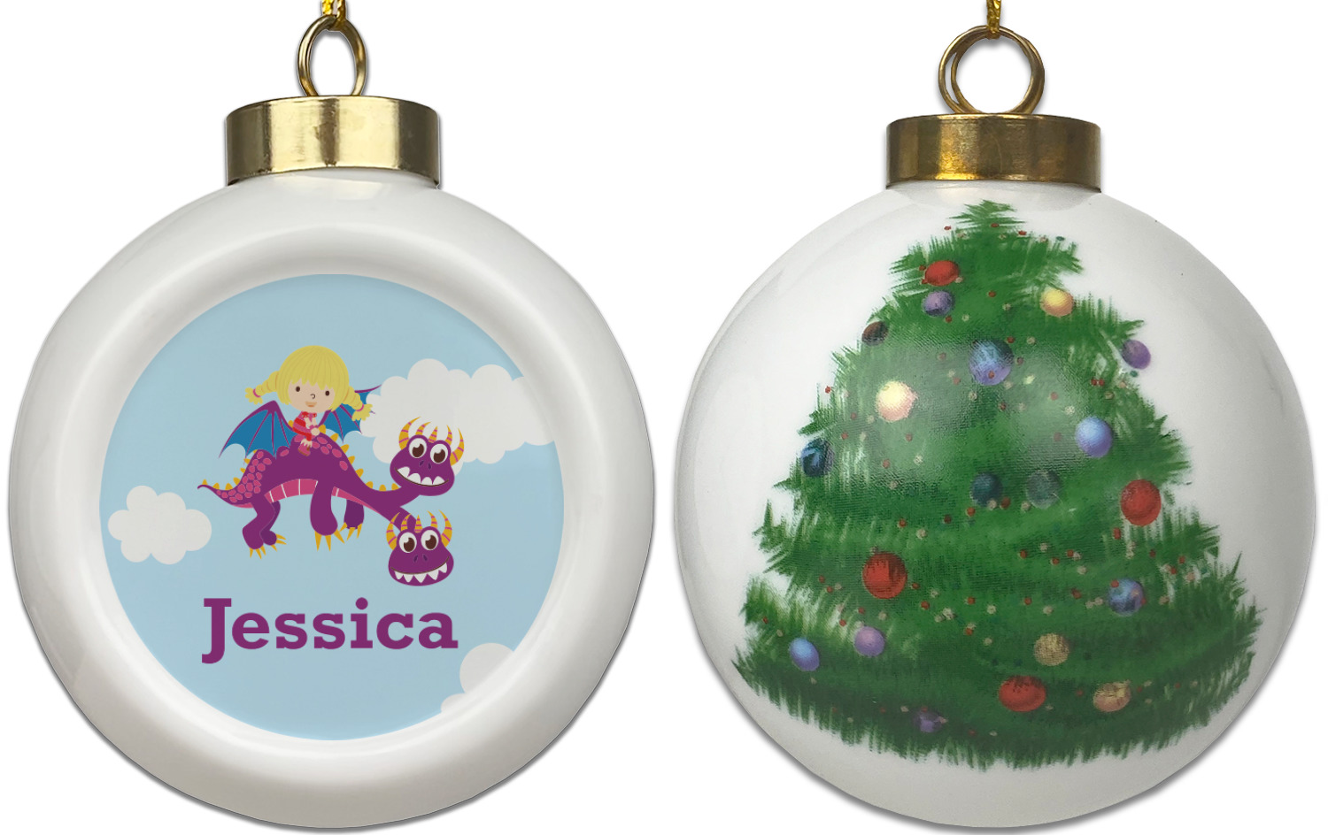 Our Christmas ornaments are a unique ceramic ball shape with a twist as it has a flat face to display your custom design! Select from one of our two design types - Christmas Tree or Poinsettia Garland - to adorn the curved back of your personal design. Each ornament measures 3H x 2.5W x 2D accompanied with a gold string accent for finishing touches to hang on your beautiful Christmas tree!