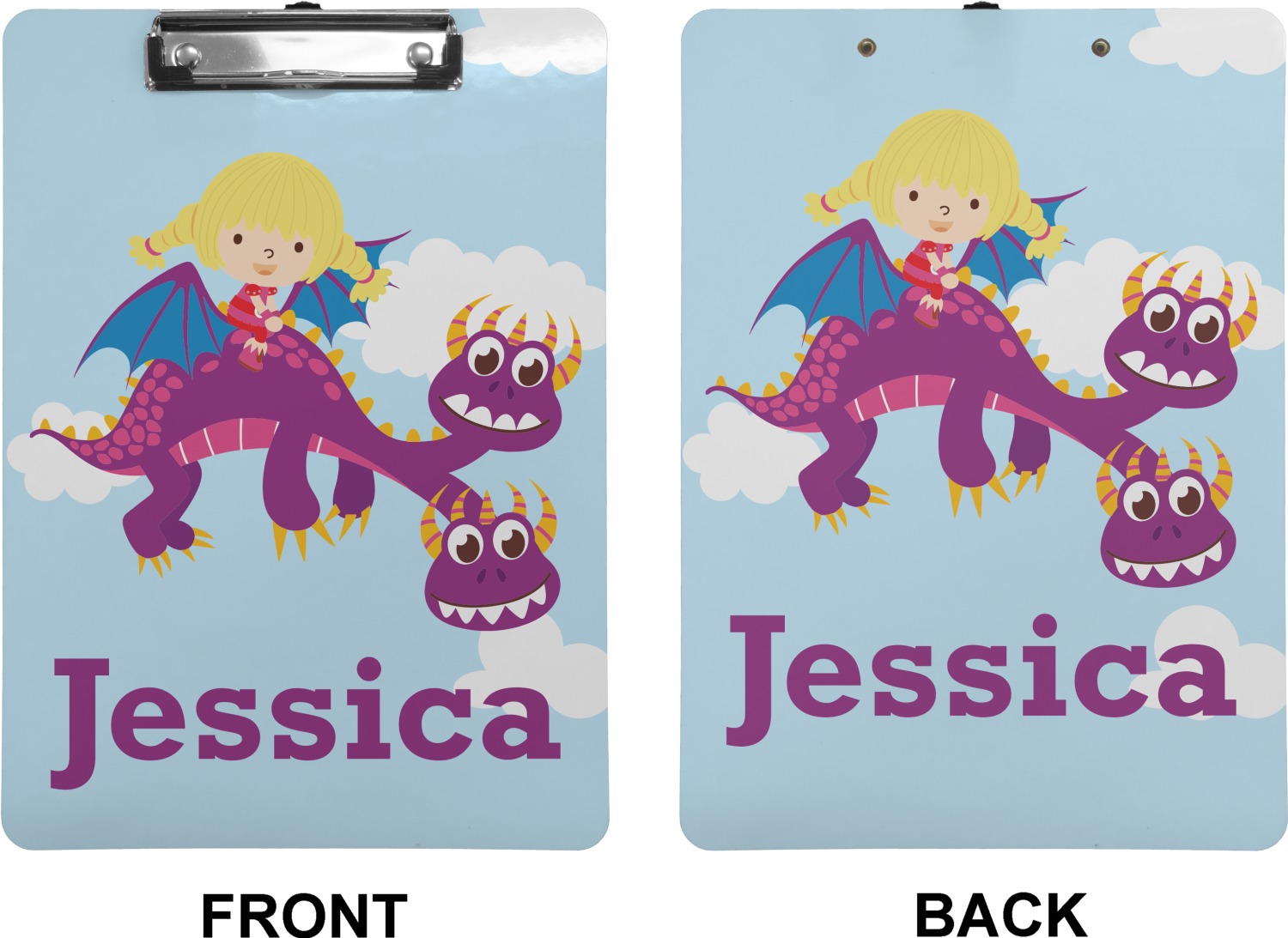 These custom clipboards are made from a strong hardboard and are coated with a glossy finish that accentuates the colors of your design. Alongside a retractable hook at its top, these decorative clipboards also feature sturdy clips to secure several sheets of paper. We sell these clipboards in two separate sizes. Our letter size measures at 12.5" L x 9" W, while our legal clipboard is approximately 15.5" L x 9" W. On both models, your personalization is printed on both sides of this clipboard and can be customized individually.