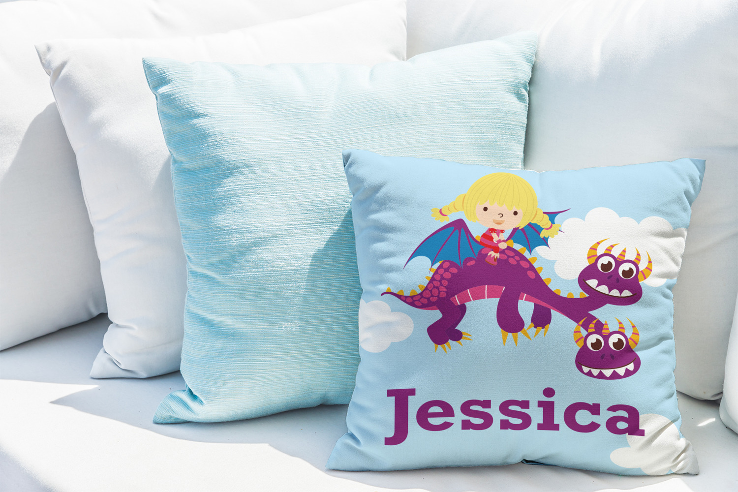 What little girl doesn't want to tame her own dragon? Open her imagination with this adorable design showing your little girl flying through a beautiful blue cloudy sky on her own dragon.
