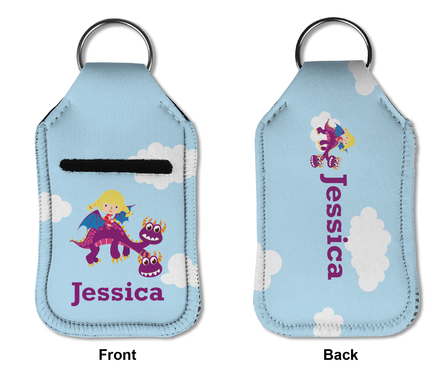 Each hand sanitizer holder comes with its own empty travel-sized, refillable hand sanitizer sure to fit snug in your customized sanitizer case! Our hand sanitizer cases are a durable, yet soft neoprene material sure to last any daily activities or travel agenda. Customize and personalize a hand sanitizer bottle holder with one of our two sizes - small (4.25" x 2.25") or large (5.5" x 2.5"). Each travel sanitizer holder comes with a keyring for attachment on bags, keys, or more!