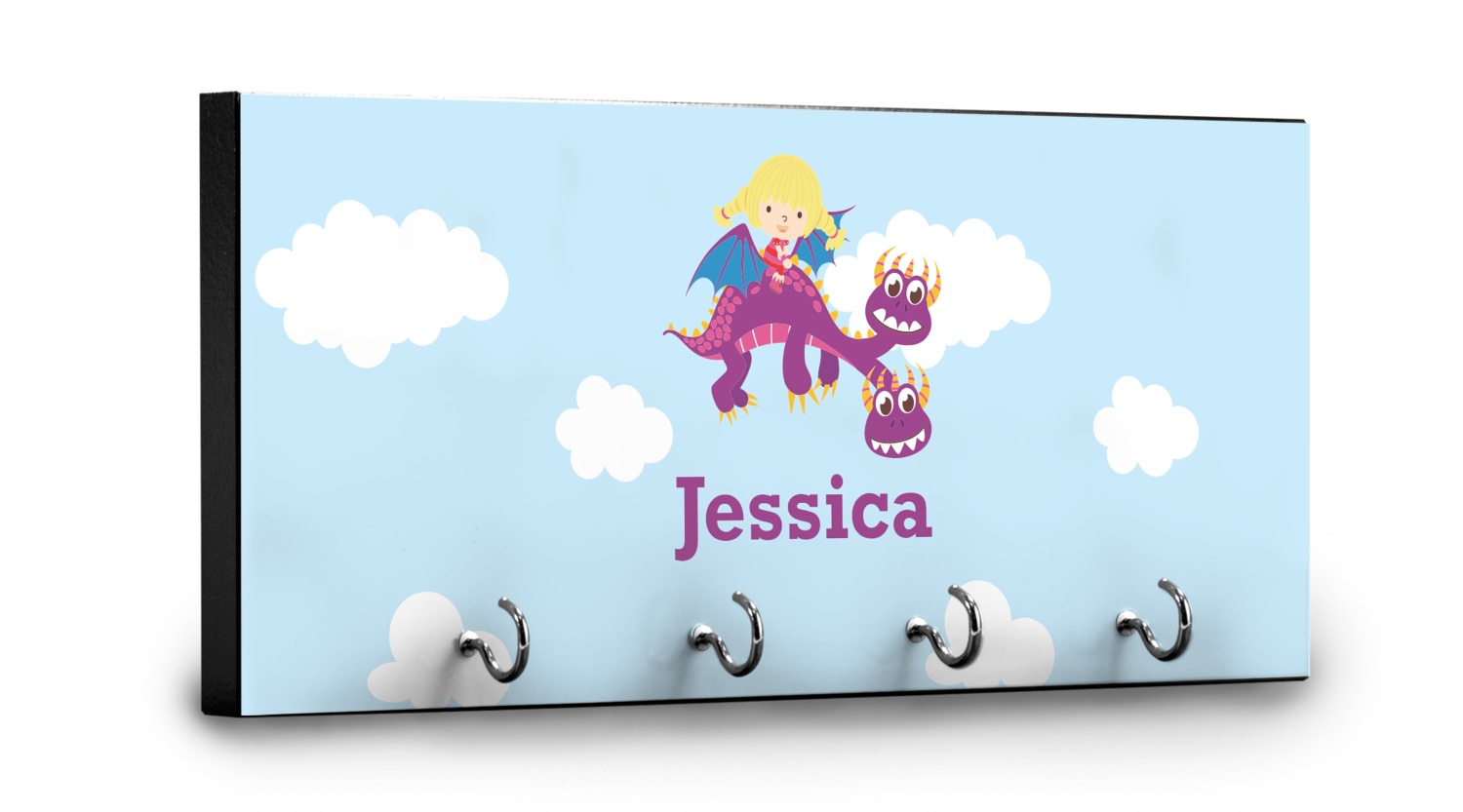 What little girl doesn't want to tame her own dragon? Open her imagination with this adorable design showing your little girl flying through a beautiful blue cloudy sky on her own dragon.