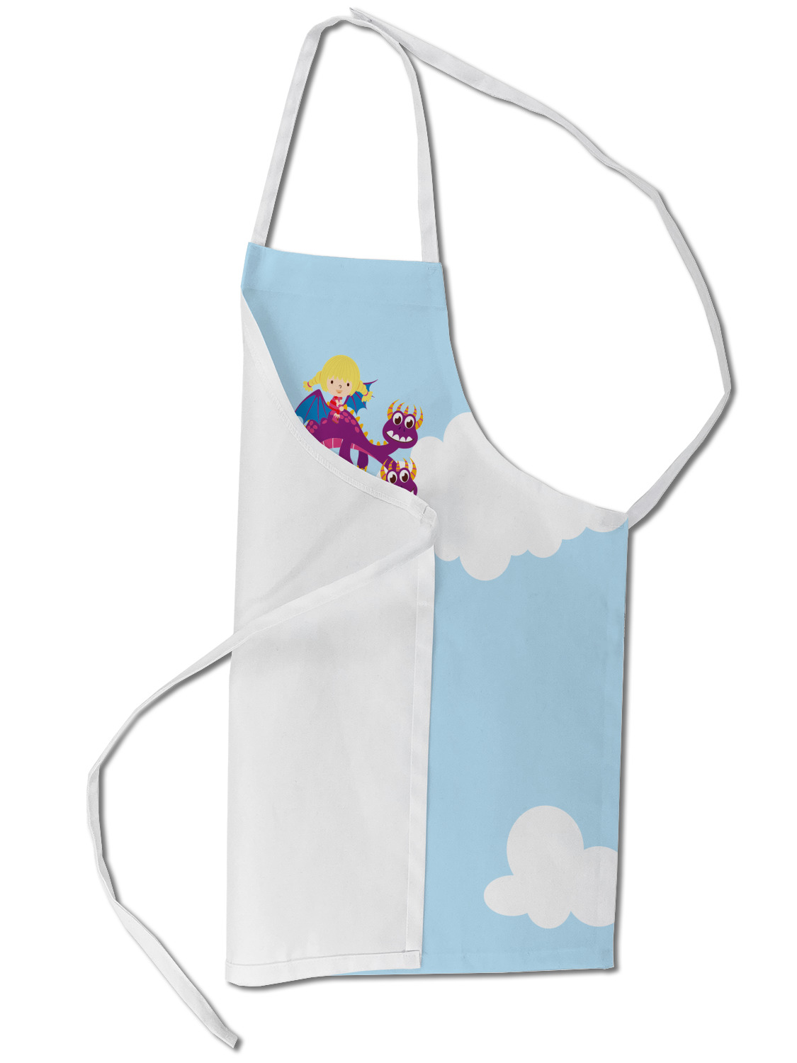 Our aprons are a lightweight yet durable polyester material. These aprons come in two sizes to fit most kids. We print your custom design on the front of the apron to display your creativity!