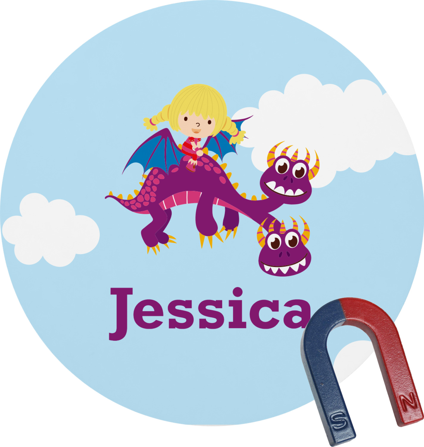 What little girl doesn't want to tame her own dragon? Open her imagination with this adorable design showing your little girl flying through a beautiful blue cloudy sky on her own dragon.