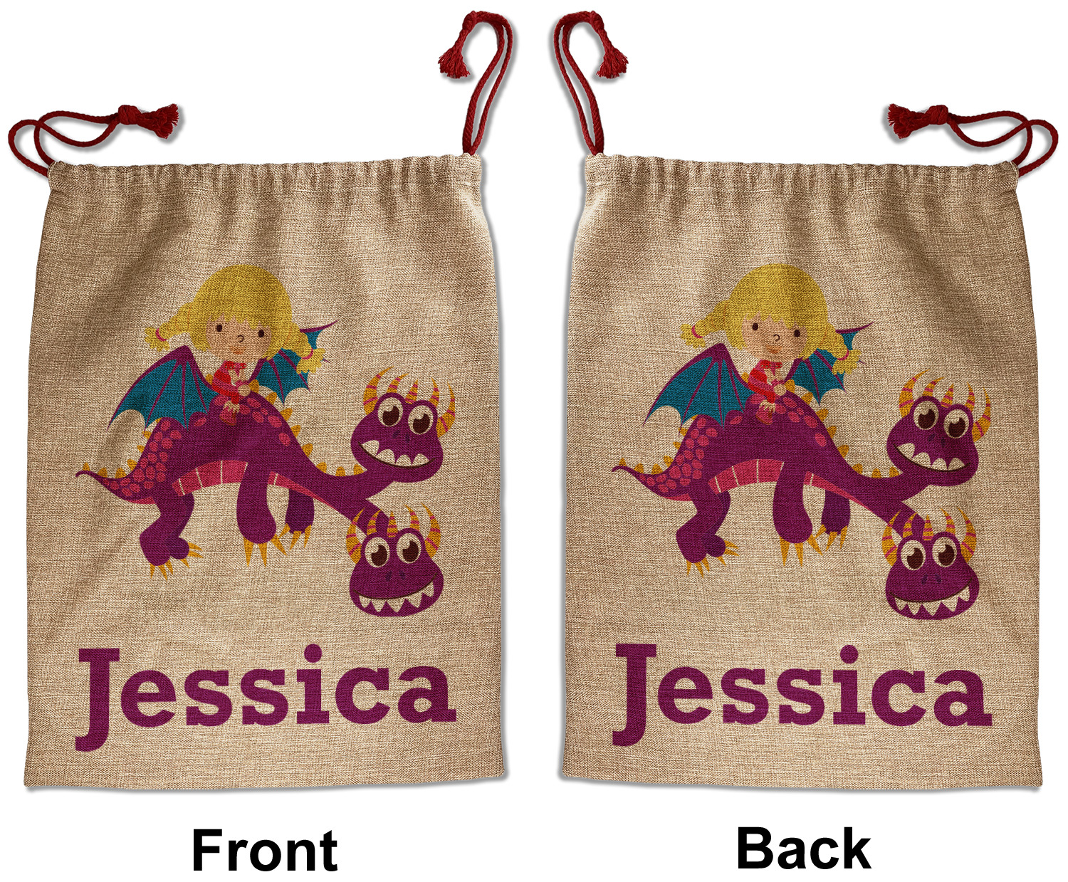 Our Santa sacks print your design on the burlap material giving it a nice rustic, natural design! The burlap material is also machine washable and wrinkle-free, so feel free to fold and store out Santa bags until the next time you need it! Secure your gifts with our red accent drawstring ties at the top of the sack so the mystery of your gift stays a surprise until Christmas day. We offer two types of printing- one side partial print or double-sided partial printing. Design and personalize your own Santa sack in time for the holidays!