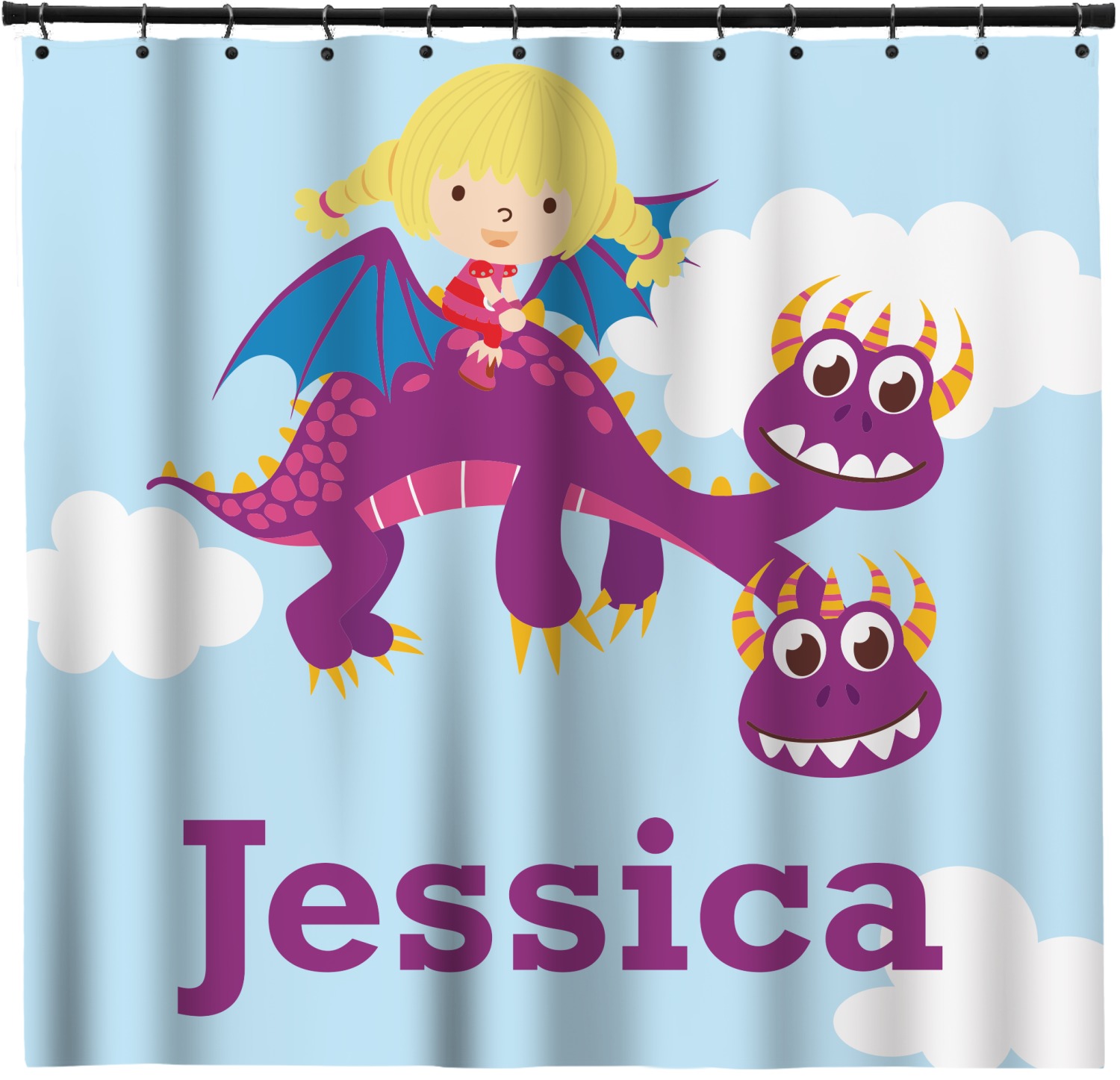 What little girl doesn't want to tame her own dragon? Open her imagination with this adorable design showing your little girl flying through a beautiful blue cloudy sky on her own dragon.