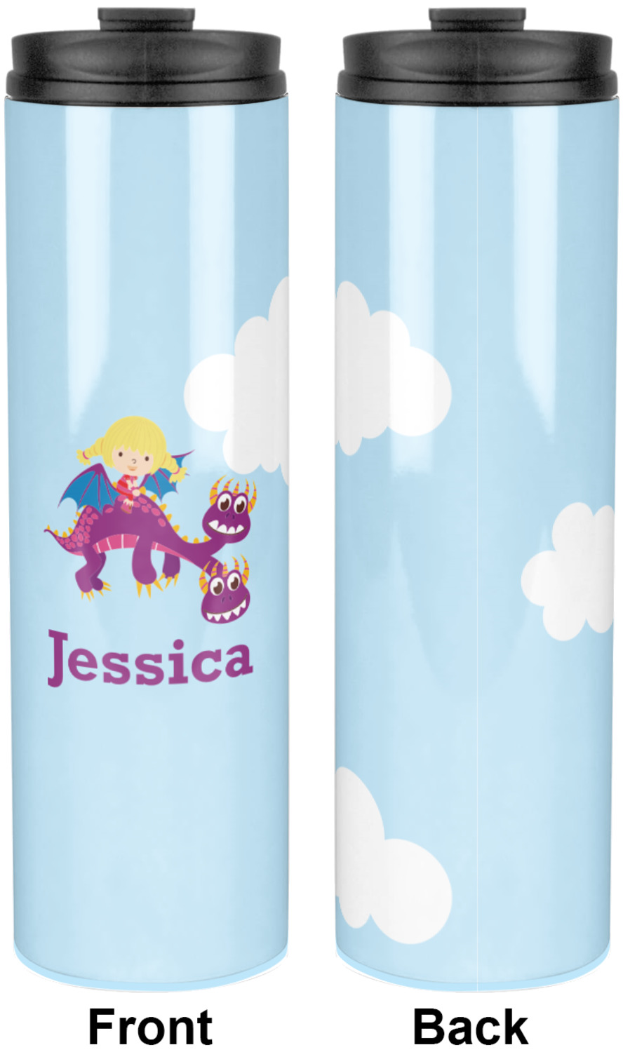 Sip your favorite drink on the go with your own custom stainless steel tumbler! Our slim cylinder shape is perfect for holding your drink in hand, in your purse, or in your backpack! This sleek and modern tumbler is a perfect gift for coffee and tea lovers keeping their drinks just the right temperature throughout the day! We offer two sizes, a 16 oz. or 20 oz., to personalize. Browse and customize or design or create your own with our online design studio!