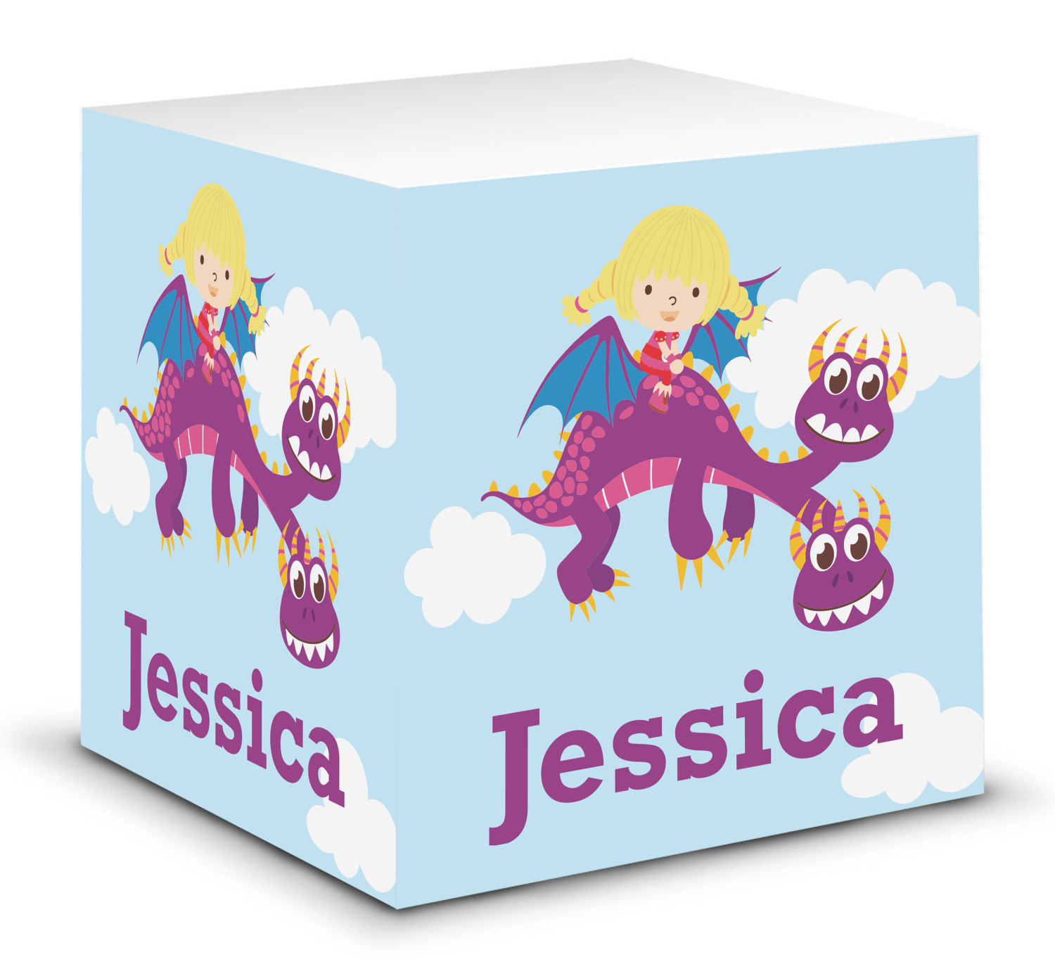 This note cube features 700 sheets of matte, white paper. Each sheet measures at 3.5 by 3.5 inches and has an adhesive strip at its top. Your personalized design is displayed on all four edges of the sticky pad.