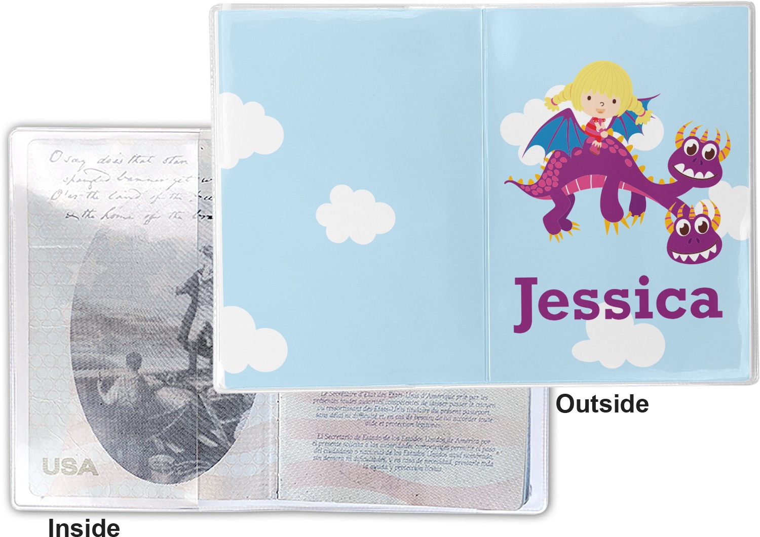 This cover is made of a sturdy clear vinyl with a personalized vinyl insert inside. There is a large and a small pocket on either side to hold the covers of your passport easily and firmly. The passport holder is approximately 7.5" x 5.25", the perfect size to snugly fit your passport. This slim cover is the perfect way to protect your passport without being one more bulky item you have to carry.