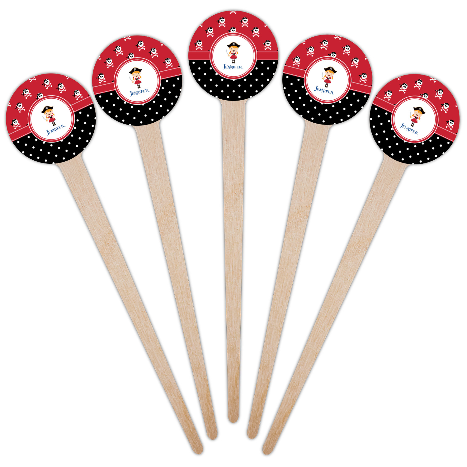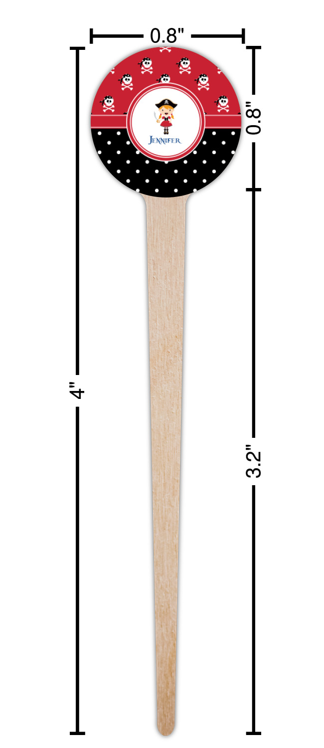 Pirate Girl Designs for 4" Round Wooden Food Picks - Single-Sided