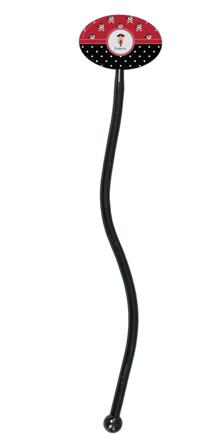 Pirate Girl Designs for 7" Oval Plastic Stir Sticks - Black - Single-Sided