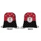 Your custom design will appear on the front and the back of the backpack. You can customize each side individually. The inside of the backpack is white and the drawstrings are black. The back pack is made of 100% polyester fabric.