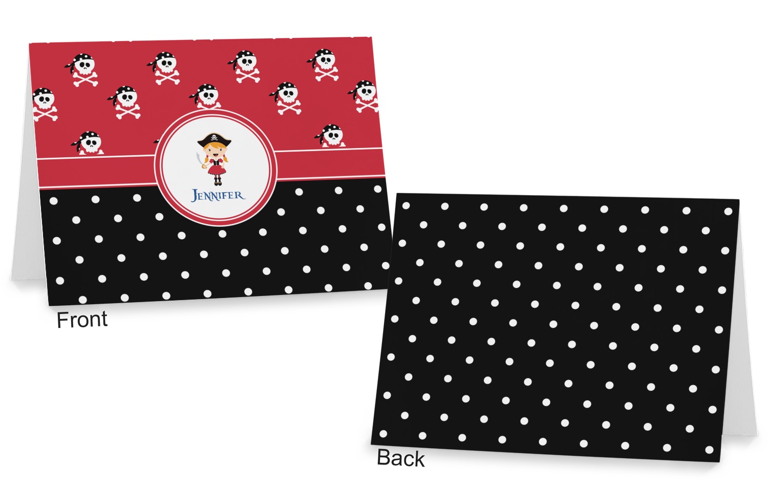 Our custom folded note cards are printed on premium 100lb. card stock and comes with white envelopes. The note card measure 5.5 by 4.25 inches and are blank on the inside for your handwritten message.