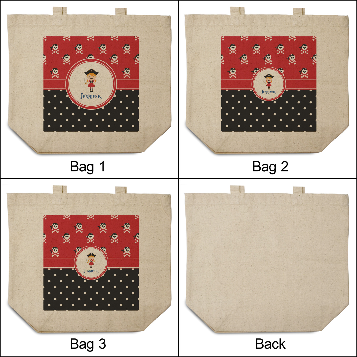 Pirate Girl Designs for Reusable Cotton Grocery Bags - Set of 3