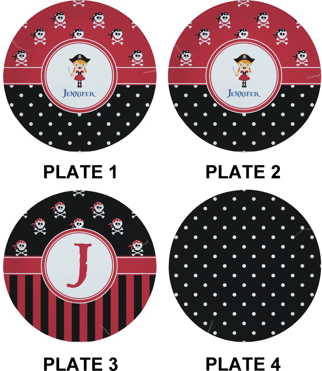 Pirate Girl Designs for Glass Appetizer / Dessert Plates 8" - Set of 4