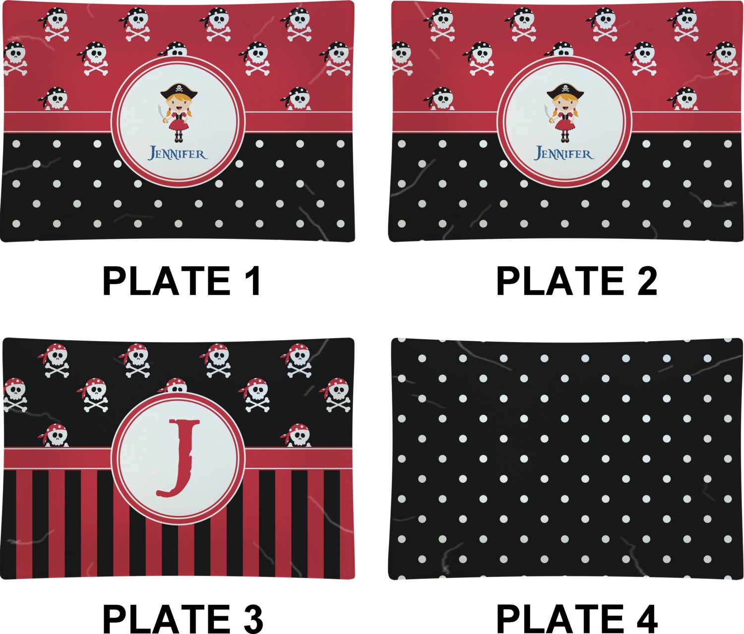 Pirate Girl Designs for Glass Rectangular Appetizer / Dessert Plate - Set of 4
