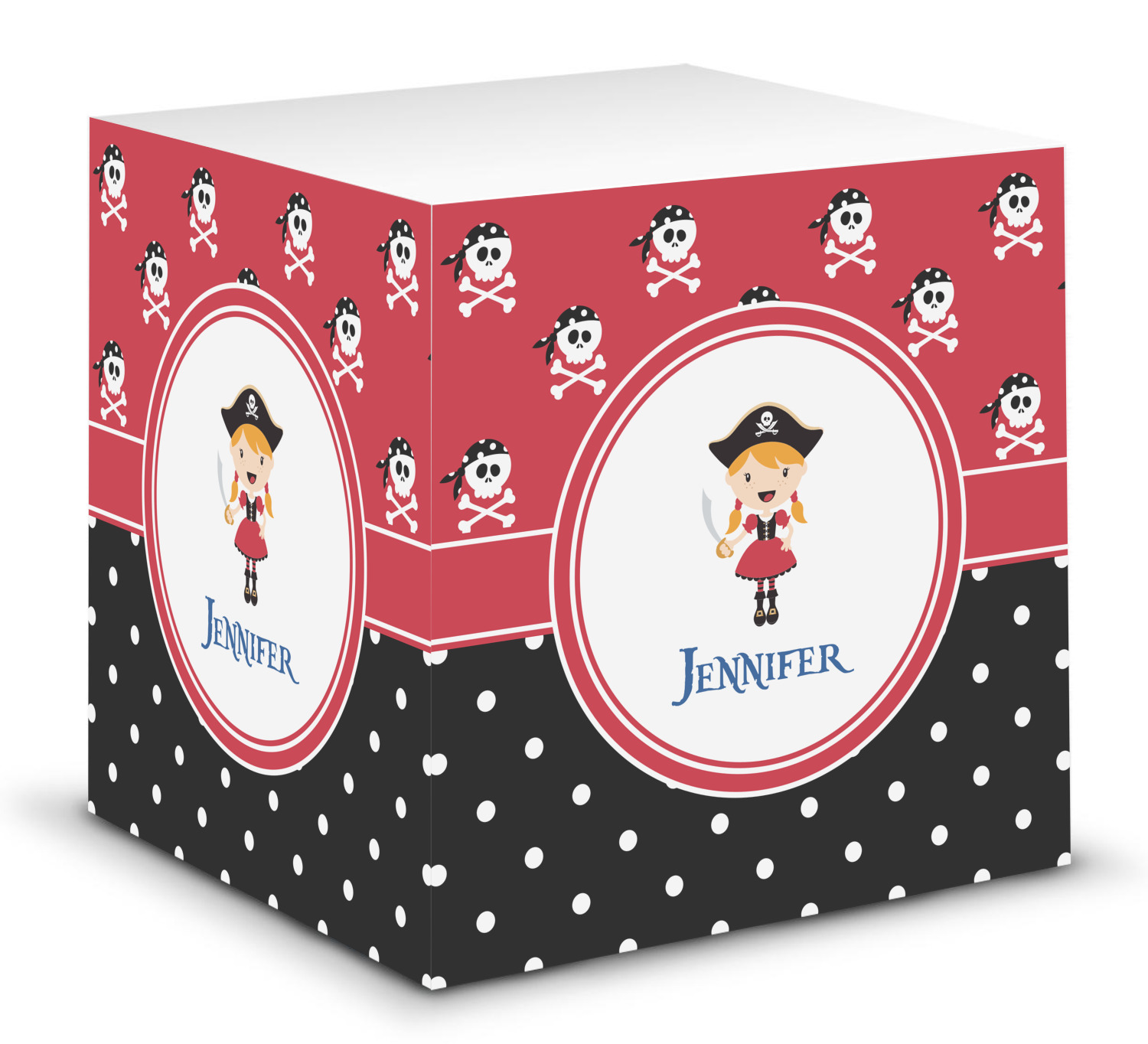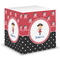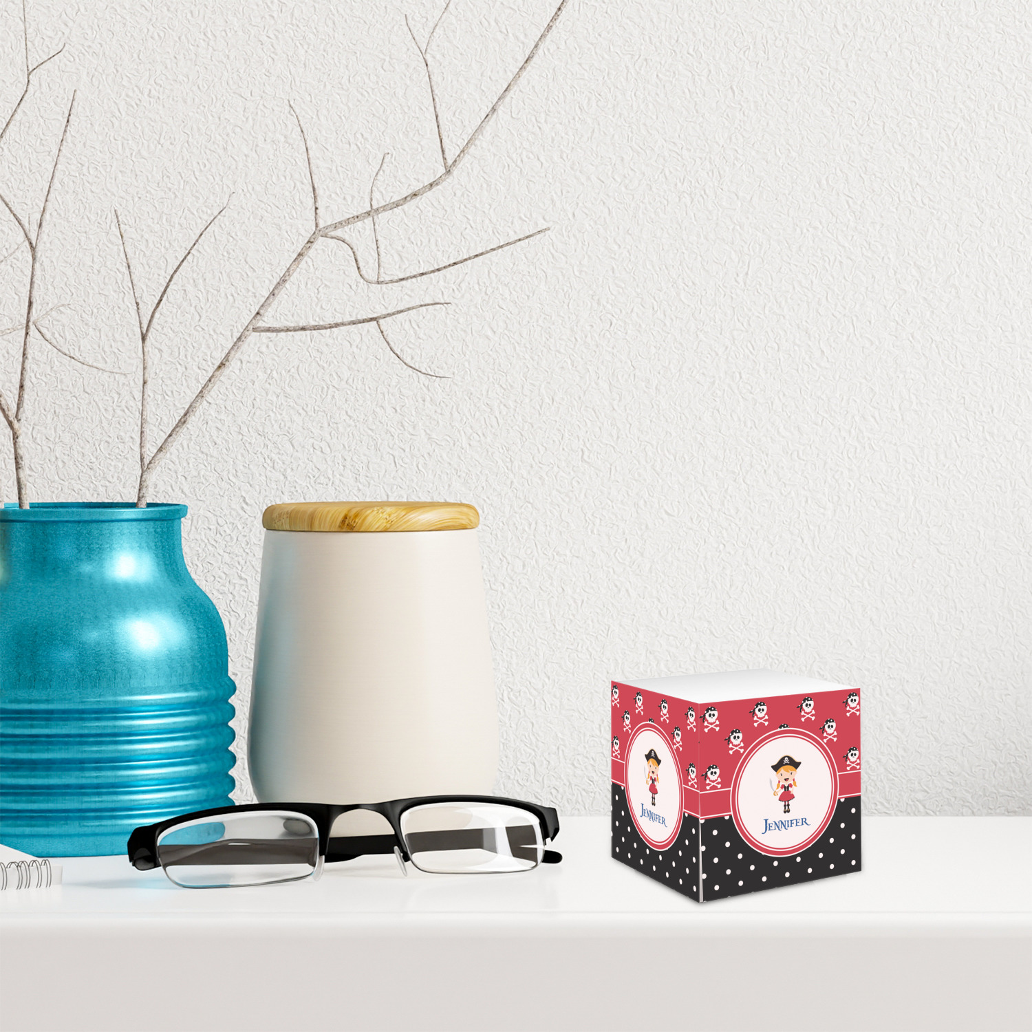 This note cube features 700 sheets of matte, white paper. Each sheet measures at 3.5 by 3.5 inches and has an adhesive strip at its top. Your personalized design is displayed on all four edges of the sticky pad.