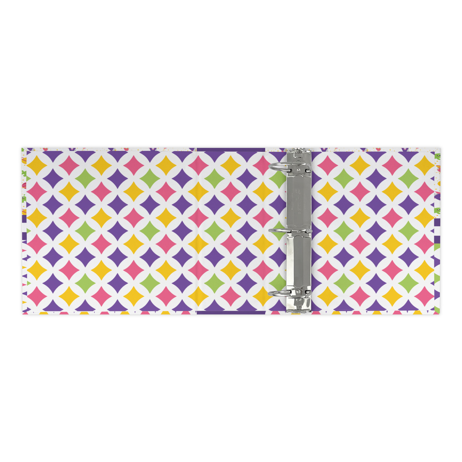 The outside is printed in 3 sections - front cover, spine and back cover - while the inside is printed in a full single print of your choice. The inside boasts a high quality nickel plated binder mechanism with a trigger opening function and is secured to the cardboard binder with posts and screws.