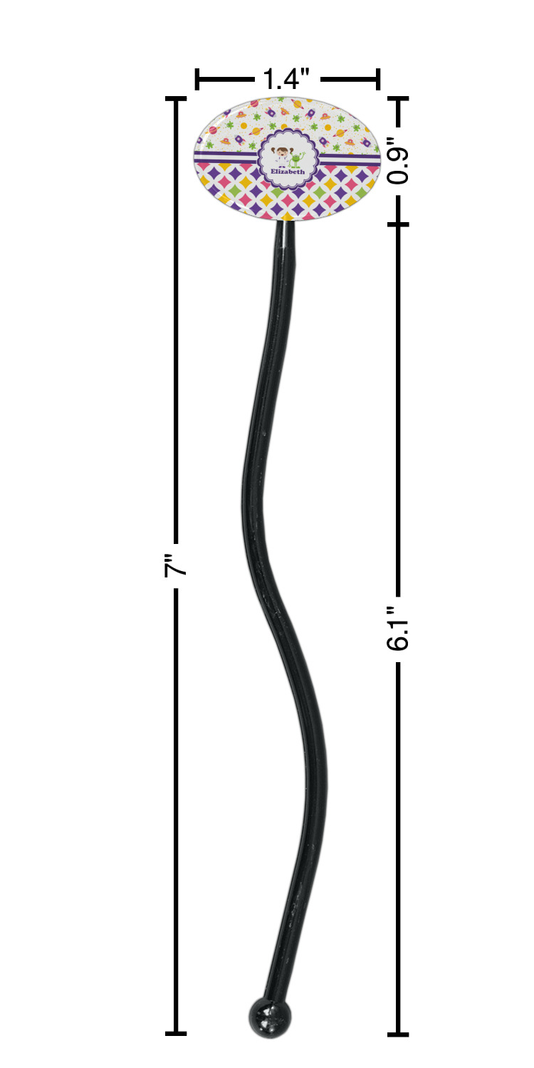 Planets Designs for 7" Oval Plastic Stir Sticks - Black - Double-Sided