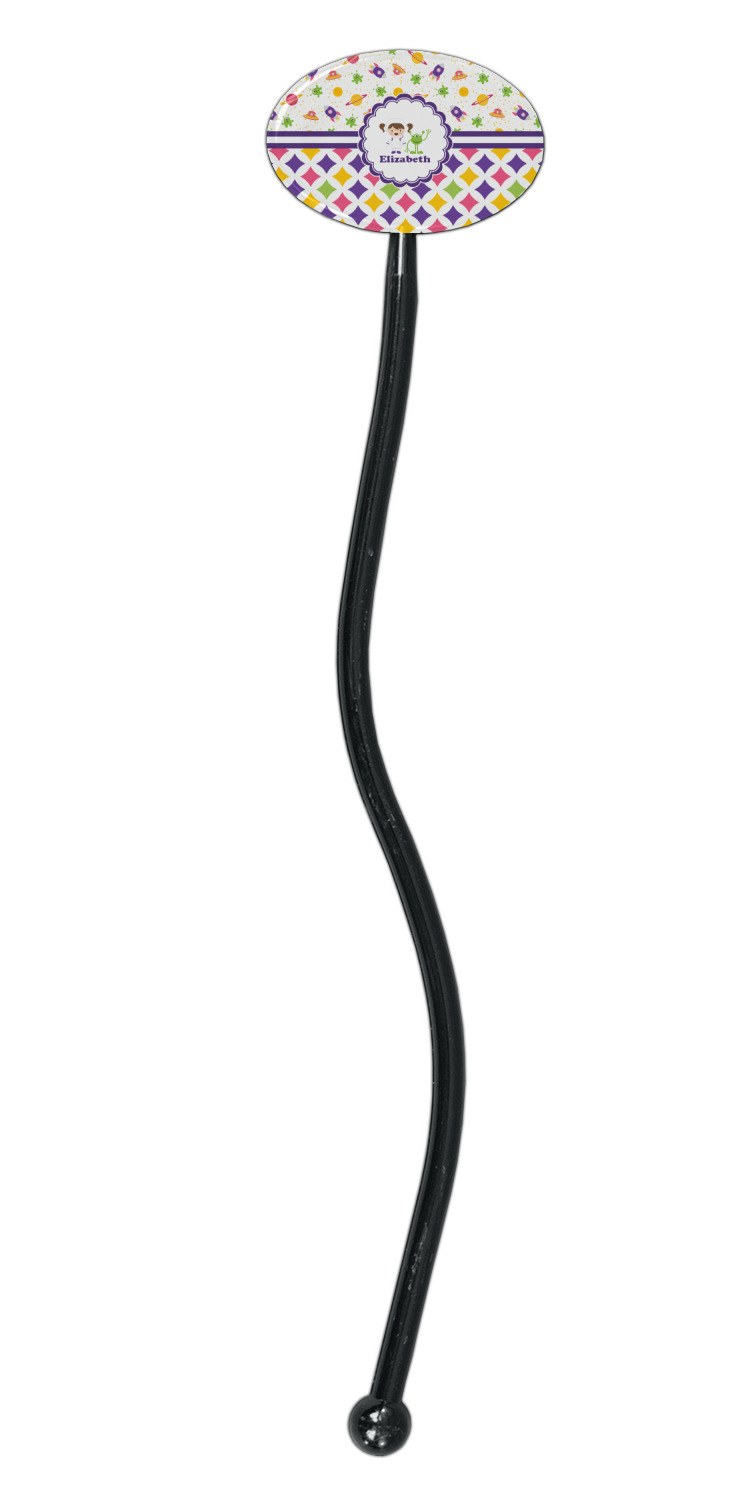 Rockets Designs for 7" Oval Plastic Stir Sticks - Black - Double-Sided