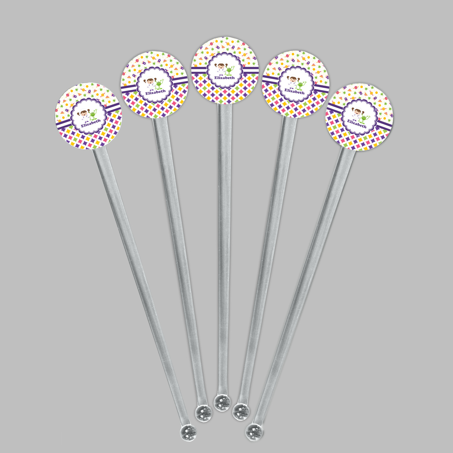 Planets Designs for 7" Round Plastic Stir Sticks - Clear