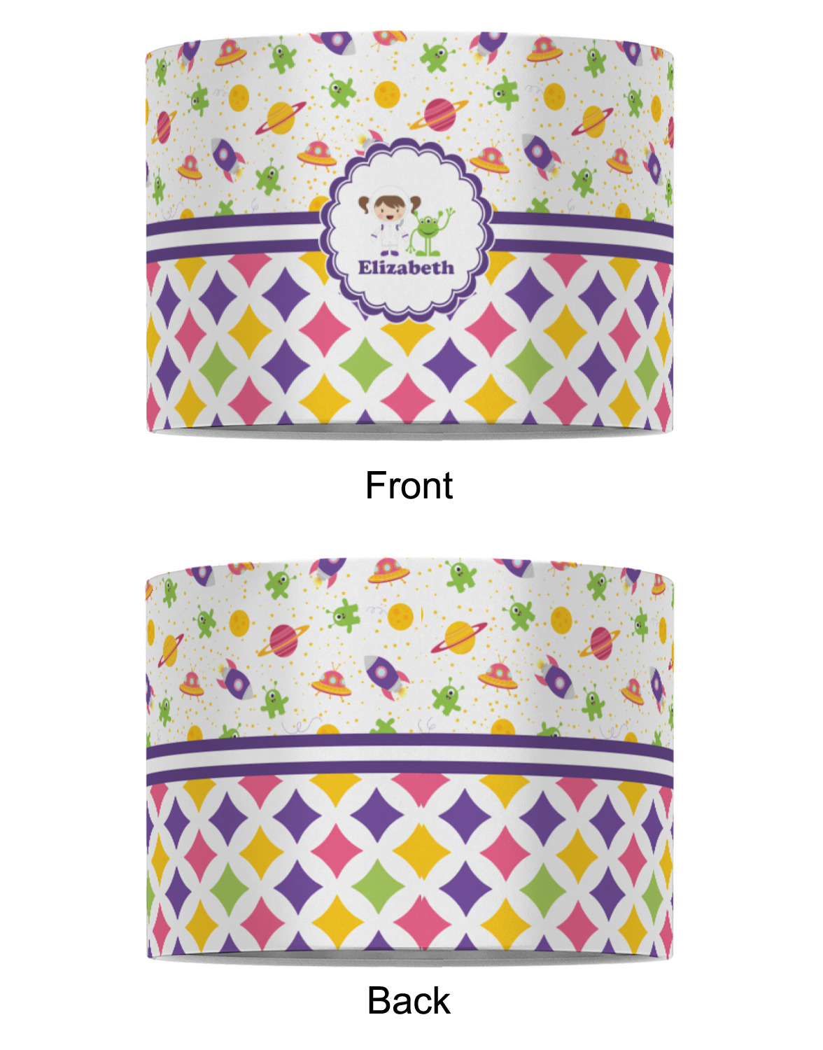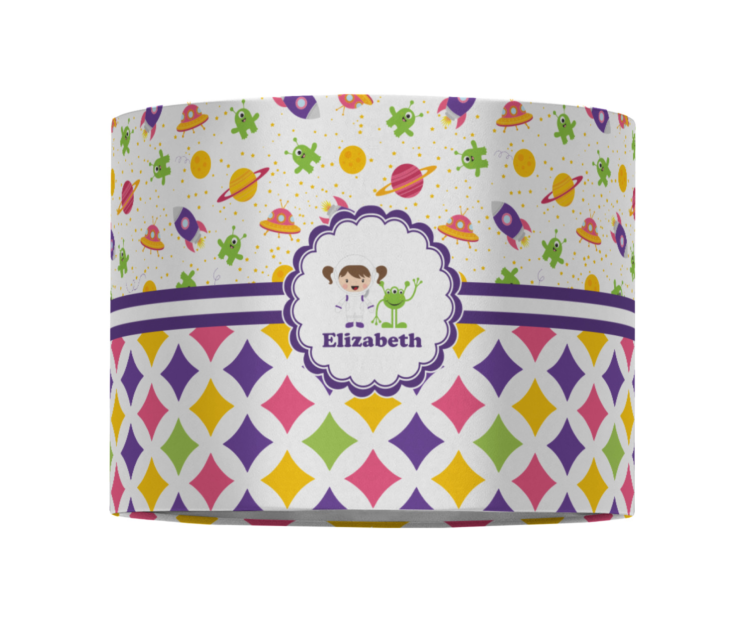 Girls love space exploration too. We have used our popular space design full of little green martians, purple and pink spaceships, yellow and pink planets, and yellow stars galore and paired it with a whimsical diamond pattern using coordinating colors.