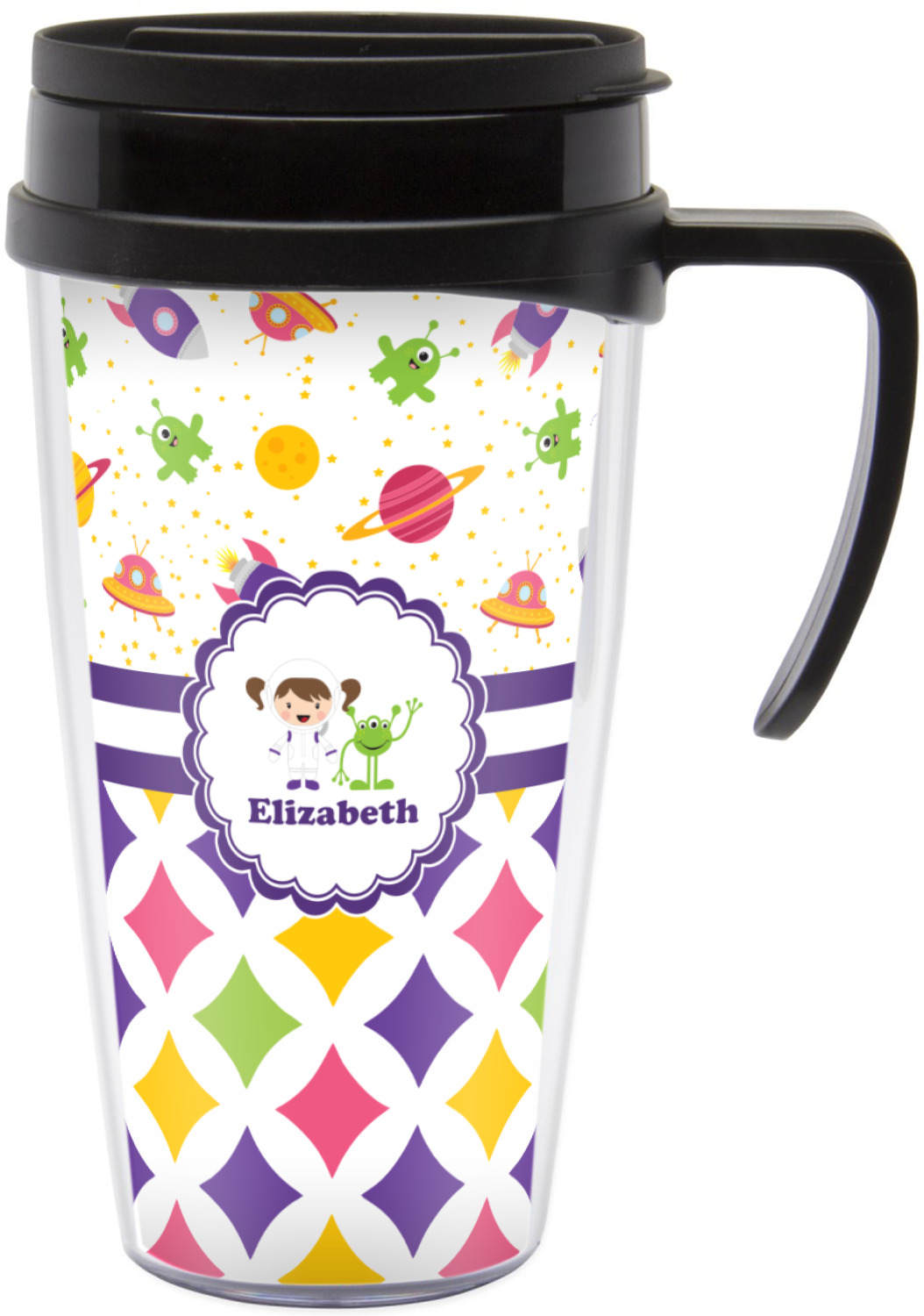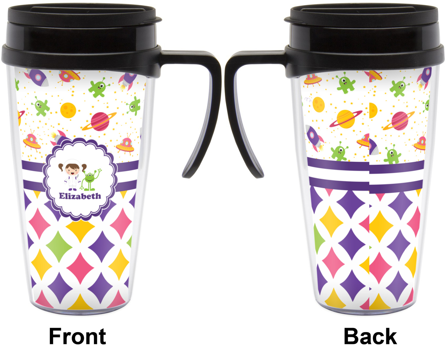 Keep your drink secure while on your daily commute with one of our personalized travel mugs! These travel mugs will add a splash of color and creativity to your kitchen counter-top, car cup holder, office desk, or wherever you choose to place them! With these custom mugs, you'll never have to settle for a boring, run-of-the-mill travel mug.