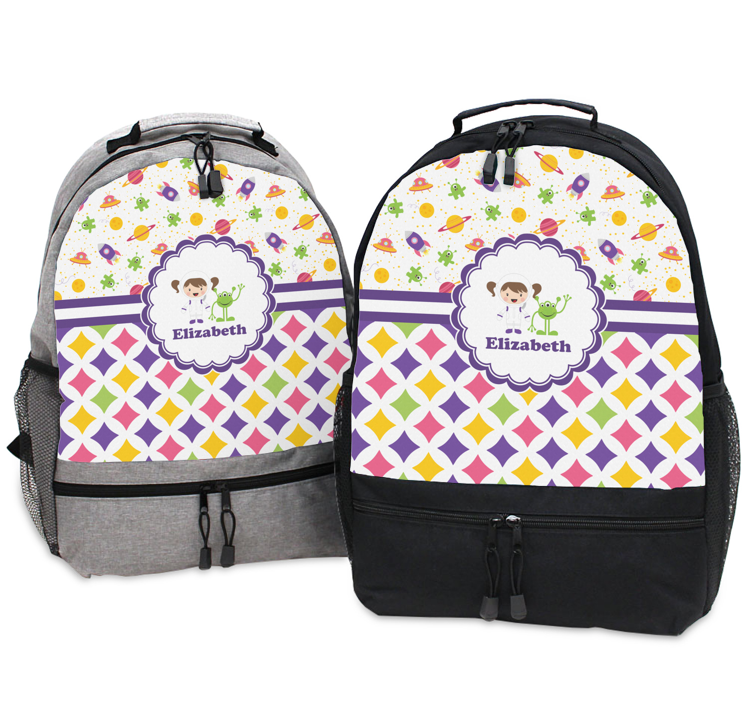 Girls love space exploration too. We have used our popular space design full of little green martians, purple and pink spaceships, yellow and pink planets, and yellow stars galore and paired it with a whimsical diamond pattern using coordinating colors.