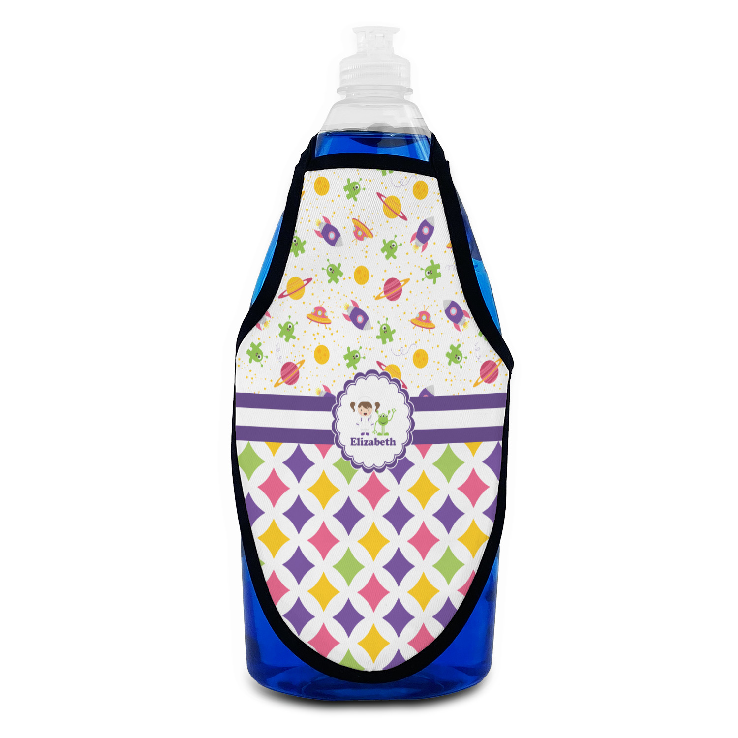 A wide white band trimmed in purple highlights the scallop label showcasing the little girl and her favorite martian personalized with your little one's name.