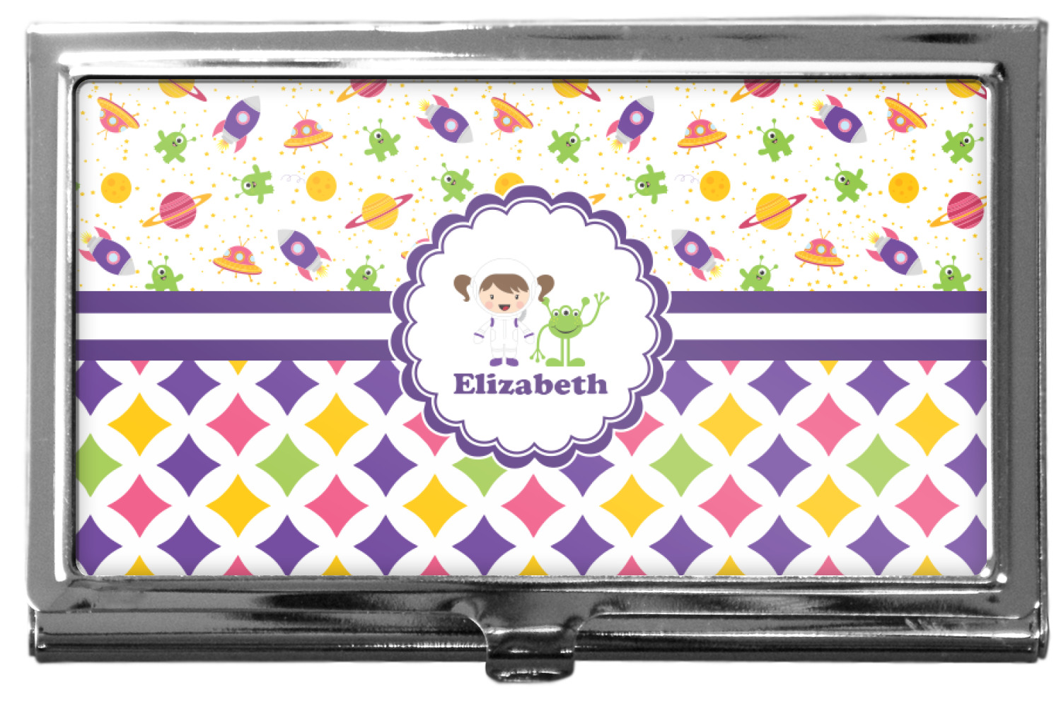 Our personalized business card holders are built from a robust, stainless steel and shaped into a sleek rectangle. At 3.75" x 2.5", and 0.25" thick, this nifty accessory holds up to 12 to 15 business cards, depending on the thickness of the cards themselves. Regardless, the skinny style makes it the perfect fit for your purse or pocket. The lid of your custom business card holder features a protruding tab to open and close your holder with a snap. To protect the mint condition of your cards, the interior of this metal business card holder is lined with a soft, felt fabric. We print your personalized design across the face of the lid.