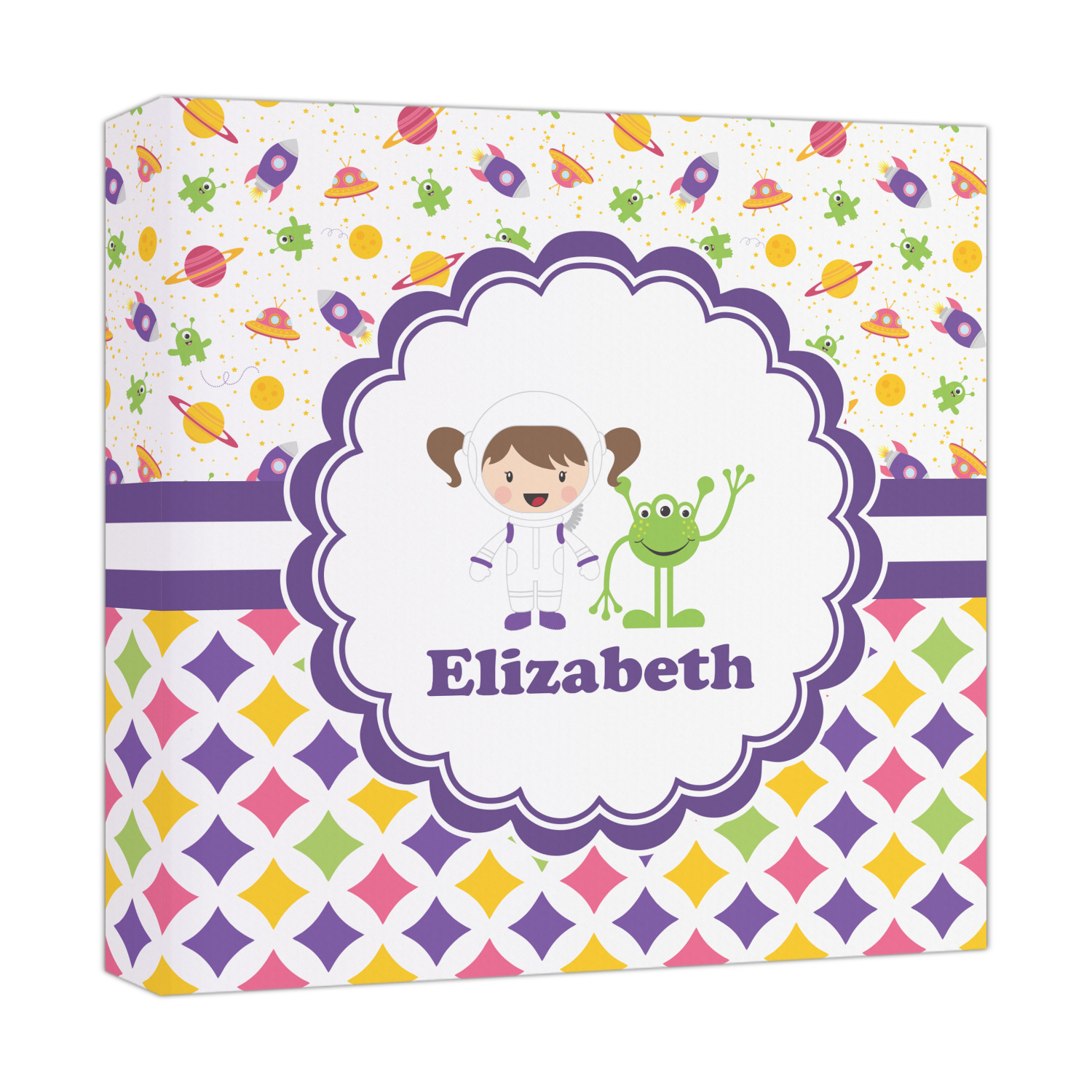 Girls love space exploration too. We have used our popular space design full of little green martians, purple and pink spaceships, yellow and pink planets, and yellow stars galore and paired it with a whimsical diamond pattern using coordinating colors.