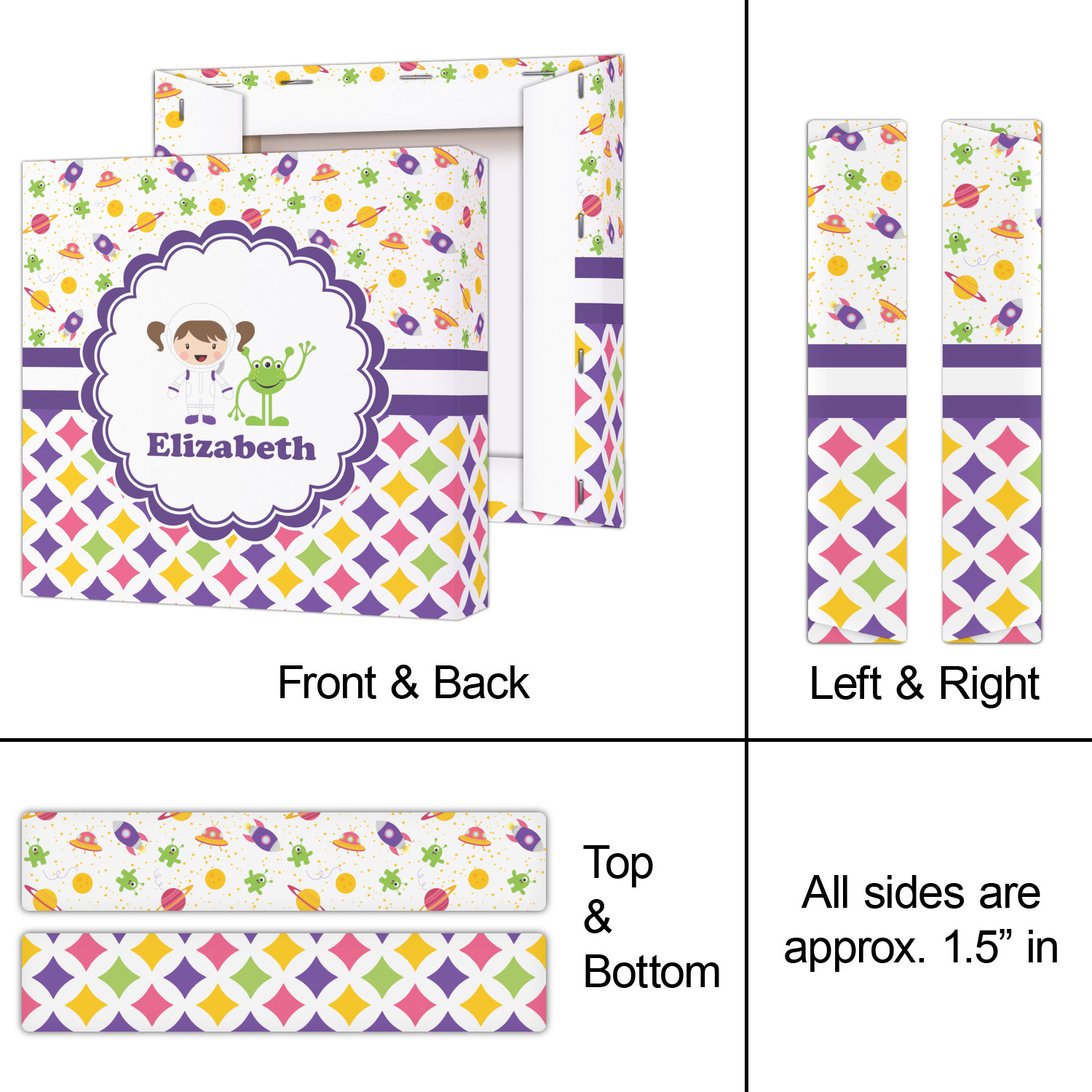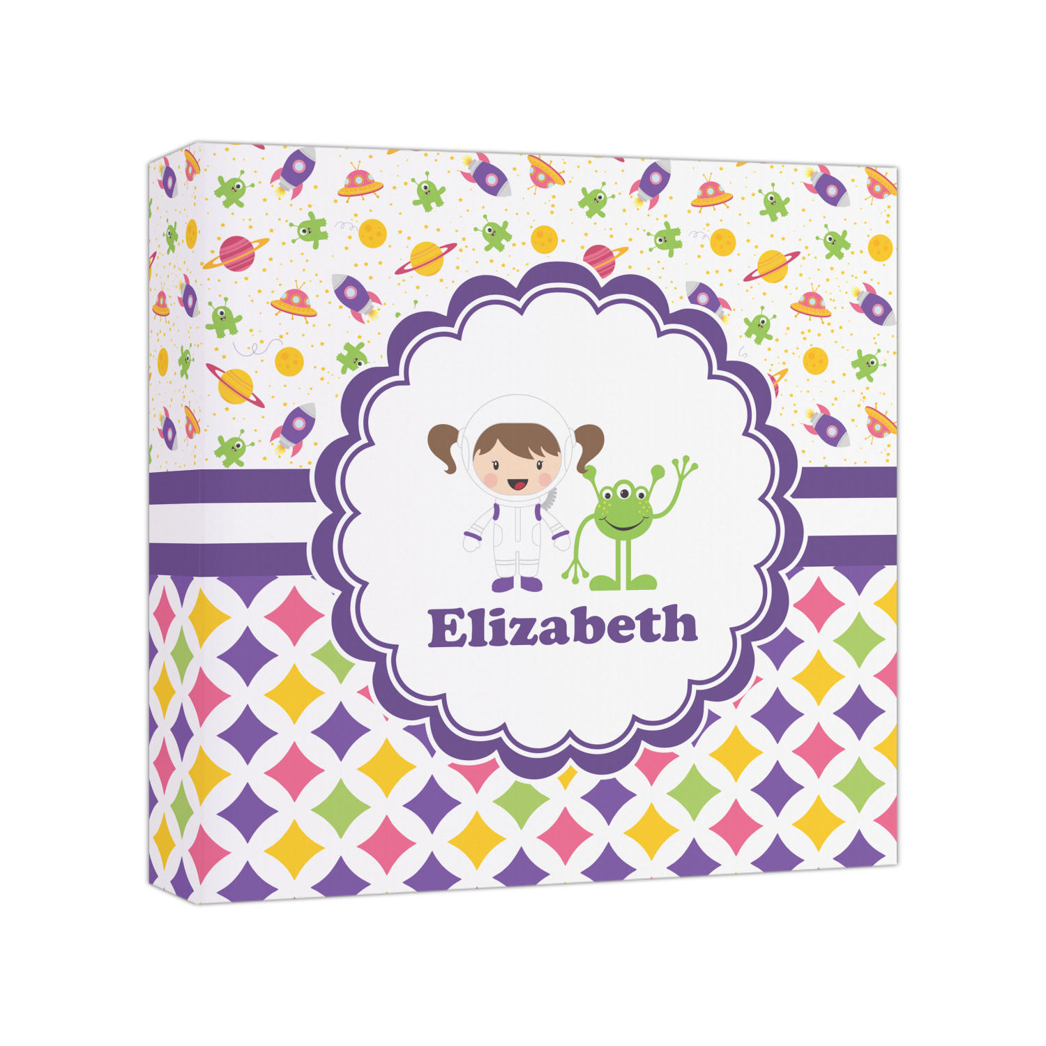 Girls love space exploration too. We have used our popular space design full of little green martians, purple and pink spaceships, yellow and pink planets, and yellow stars galore and paired it with a whimsical diamond pattern using coordinating colors.