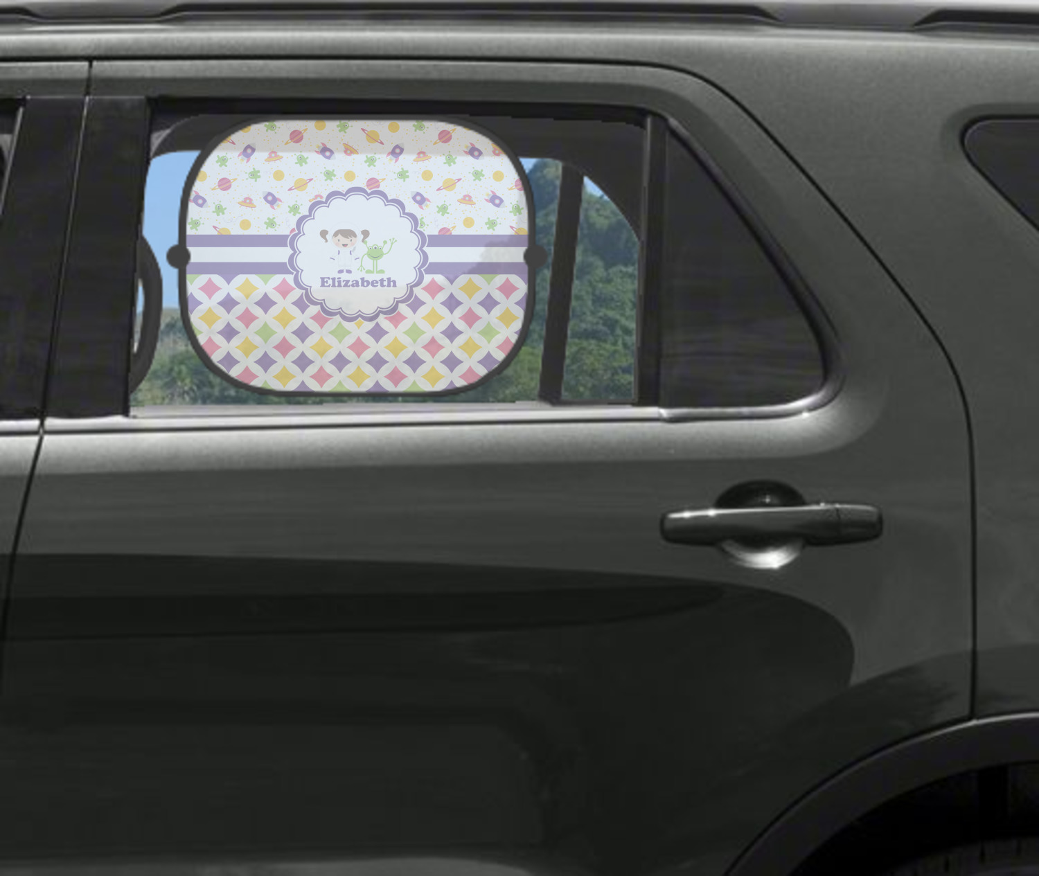 Our car sun shades are a perfect, personalized, multipurpose item that you can add to your car. The shades block most sunlight from your little ones' faces, keep the backseat a bit darker, and add a cute touch of personality to your windows.