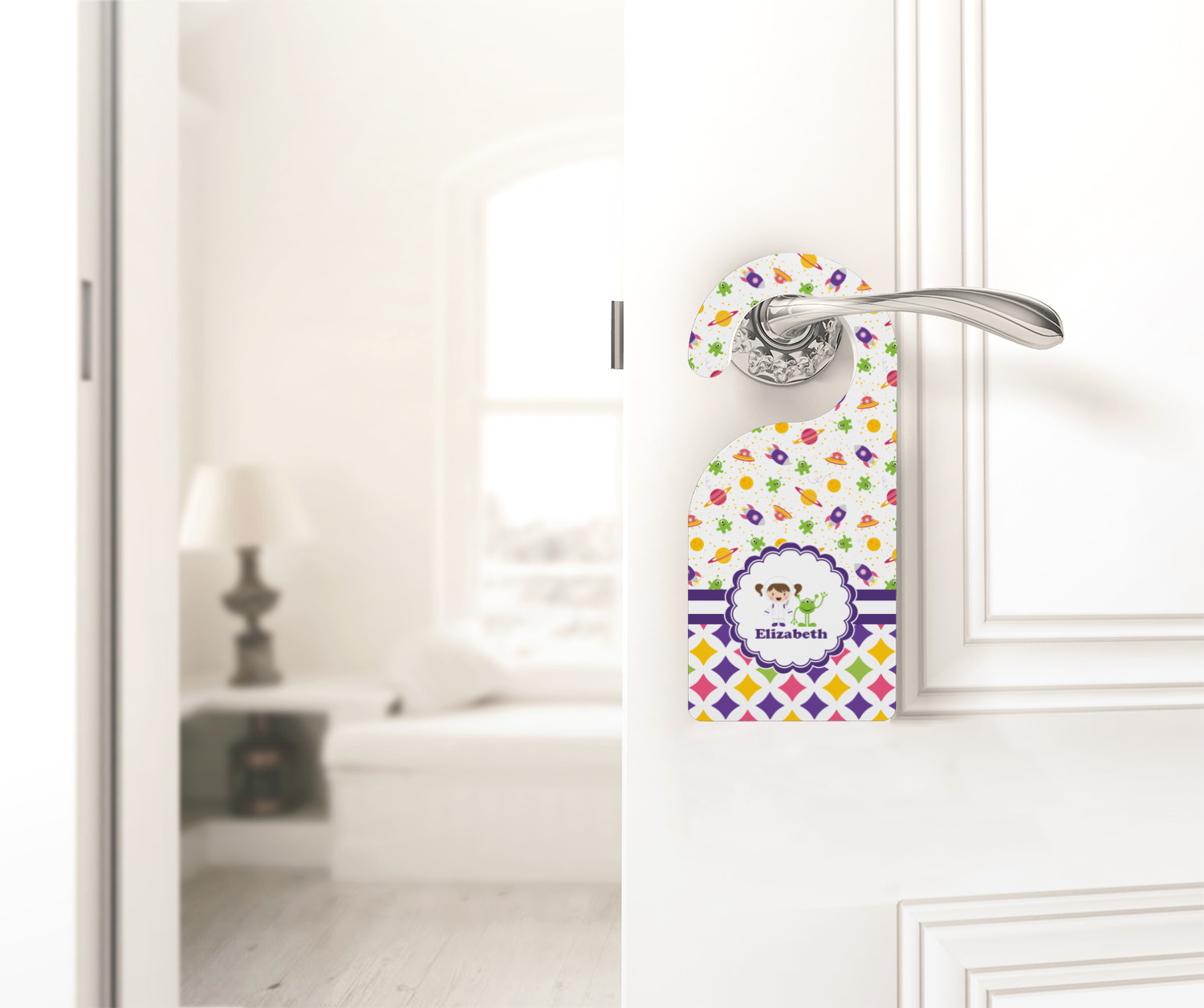 Decorate your door handles with one of our door hangers! These multi-purpose doorknob hangers can be used in a variety of situations; kids can use them to mark their rooms, parents can use them to keep privacy, and they can be used on the doors of nurseries to indicate when the baby is sleeping. Customize a few for some of the rooms in your house today! You could even give these as gifts; give one to the newlyweds in your life, or to a college student so they can use them in their dorm!