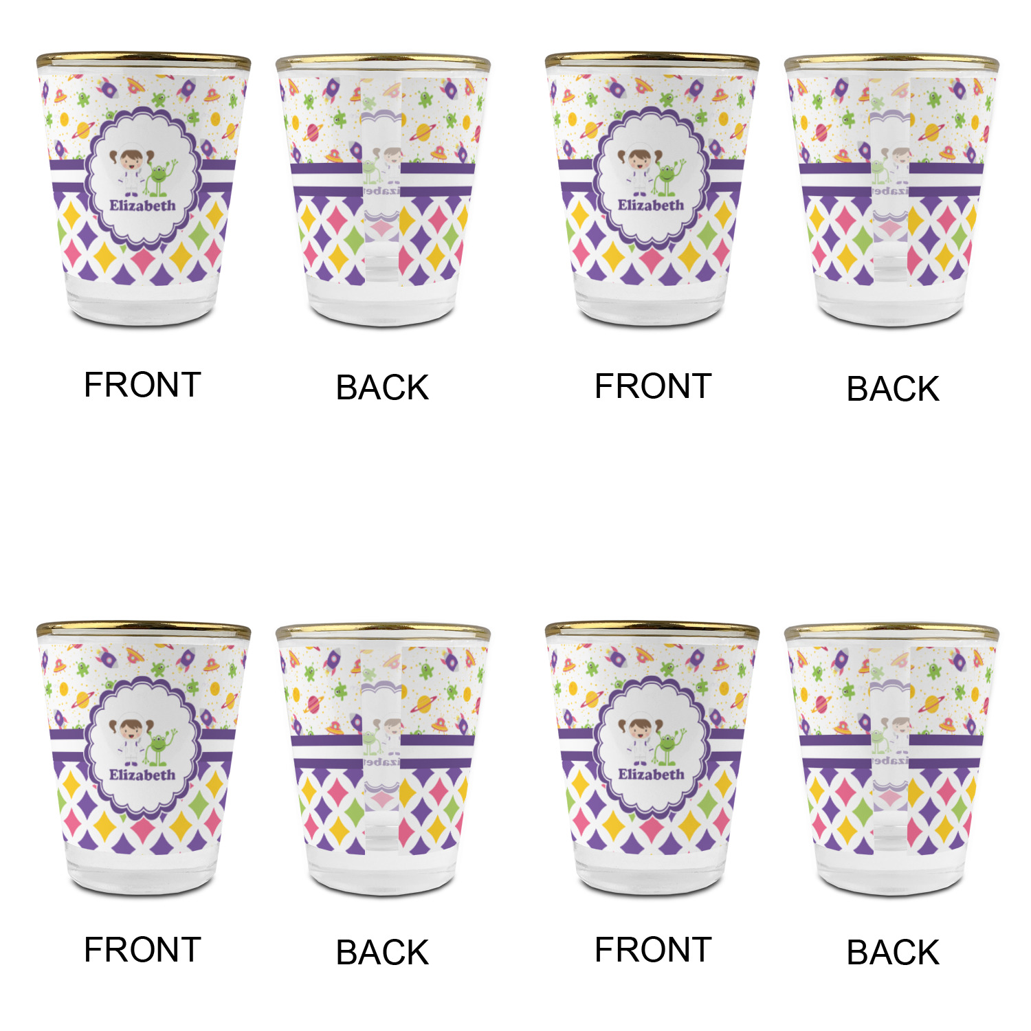 Planets Designs for Glass Shot Glasses - 1.5 oz - with Gold Rim - Set of 4