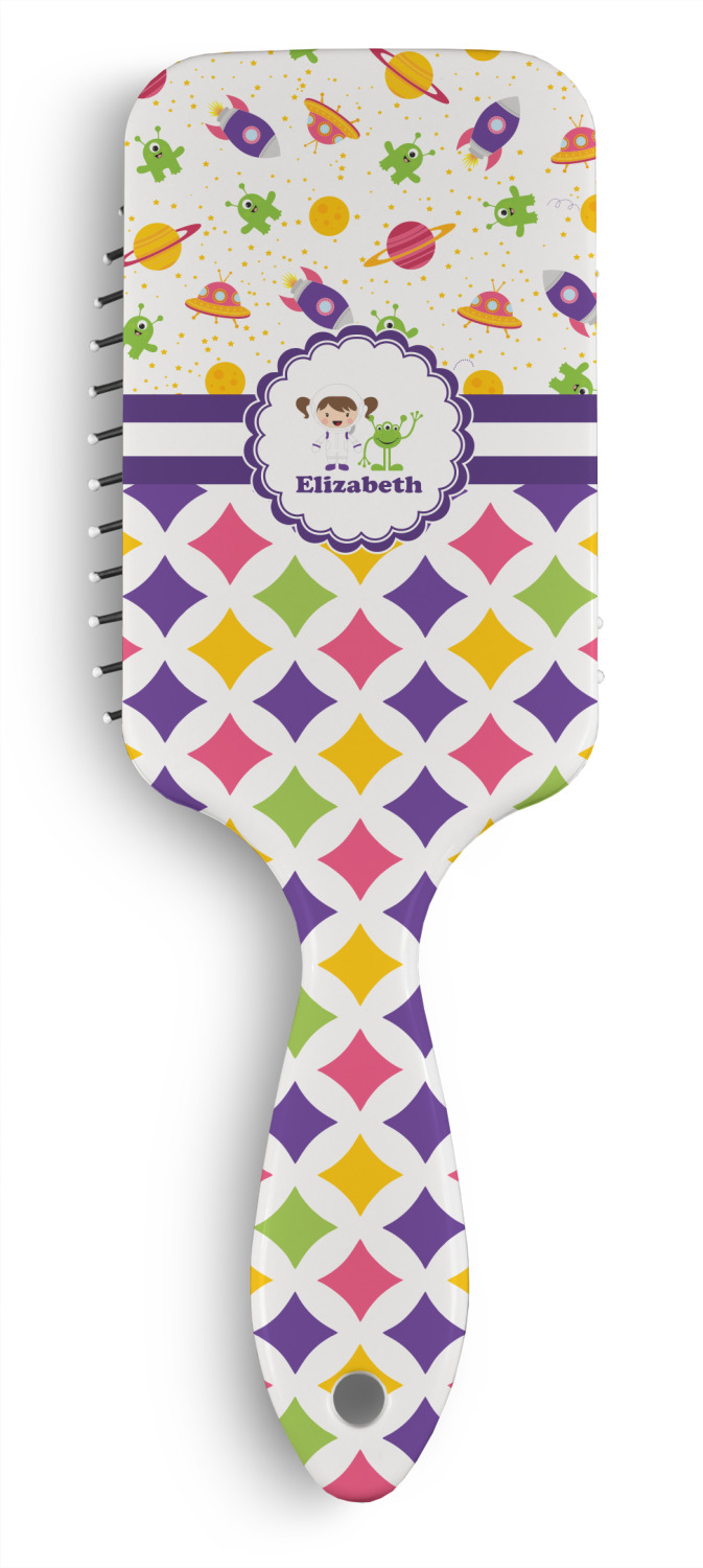 Our paddle style customizable hair brushes are perfect for all hair types- straight, curly, wavy, long, short, thick or textured.