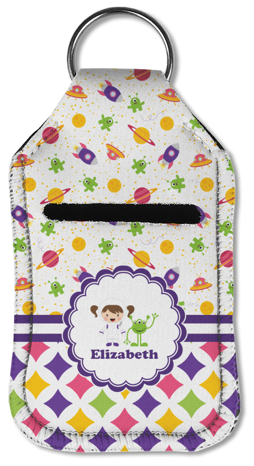 Each hand sanitizer holder comes with its own empty travel-sized, refillable hand sanitizer sure to fit snug in your customized sanitizer case! Our hand sanitizer cases are a durable, yet soft neoprene material sure to last any daily activities or travel agenda. Customize and personalize a hand sanitizer bottle holder with one of our two sizes - small (4.25" x 2.25") or large (5.5" x 2.5"). Each travel sanitizer holder comes with a keyring for attachment on bags, keys, or more!