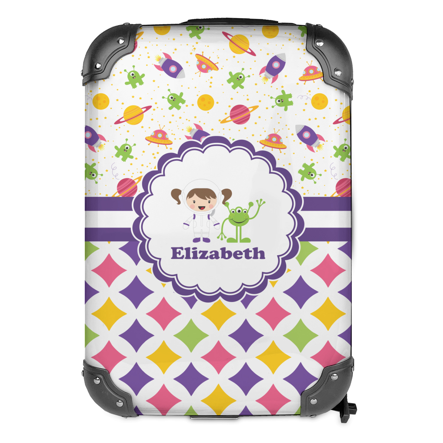 Girls love space exploration too. We have used our popular space design full of little green martians, purple and pink spaceships, yellow and pink planets, and yellow stars galore and paired it with a whimsical diamond pattern using coordinating colors.