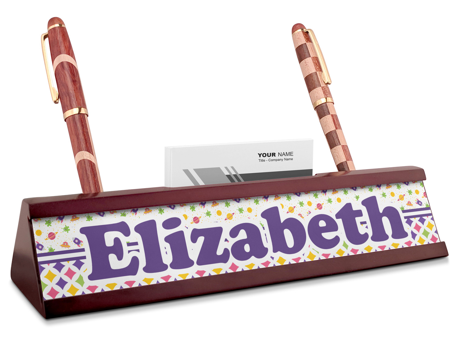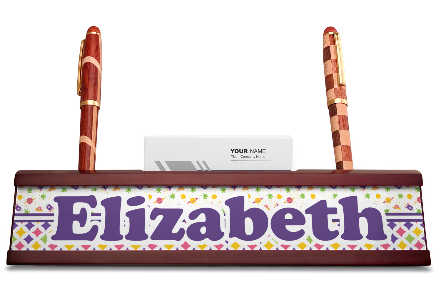 Planets Designs for Red Mahogany Nameplates with Business Card Holder