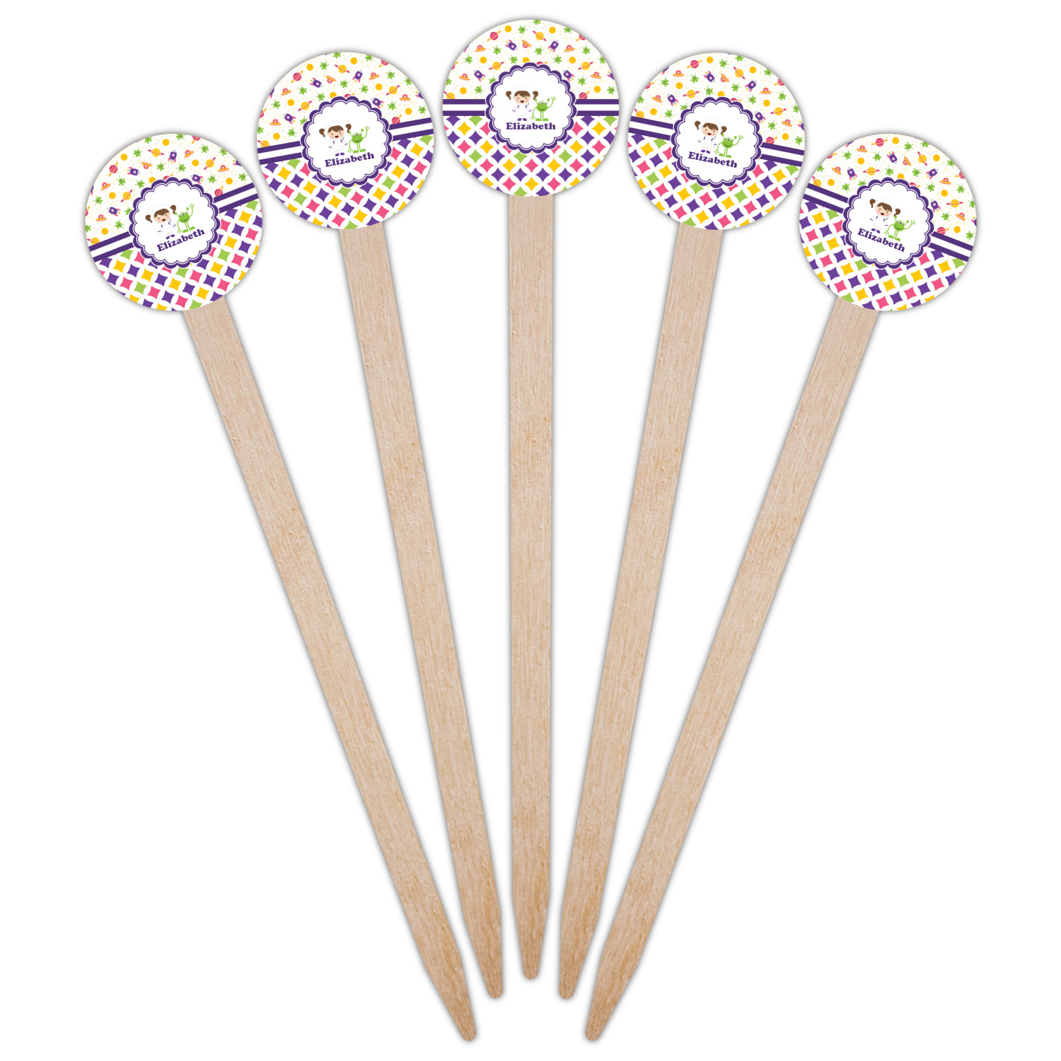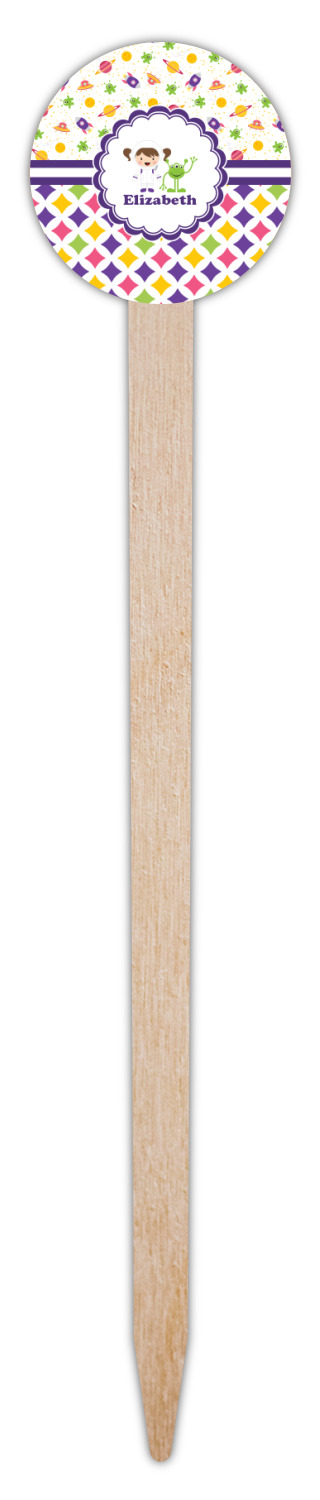 A wide white band trimmed in purple highlights the scallop label showcasing the little girl and her favorite martian personalized with your little one's name.
