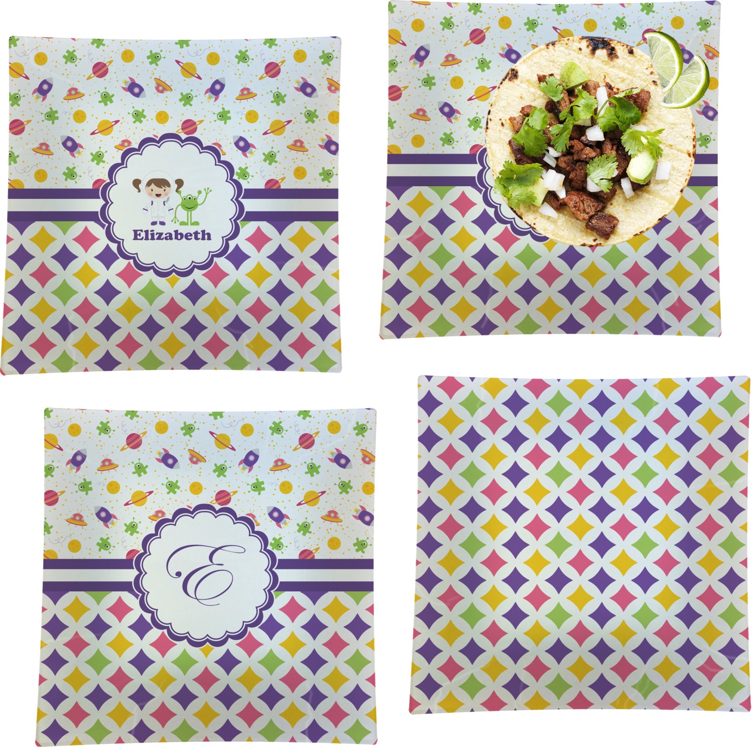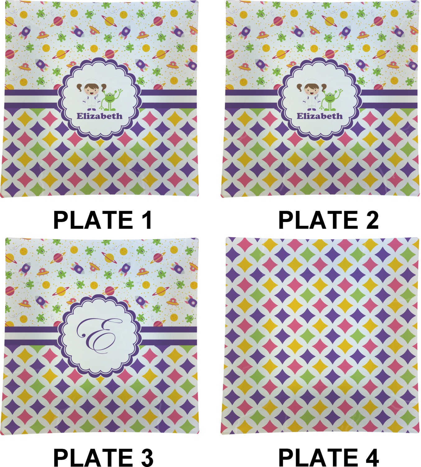 Planets Designs for Glass Square Lunch / Dinner Plates 9.5" - Set of 4