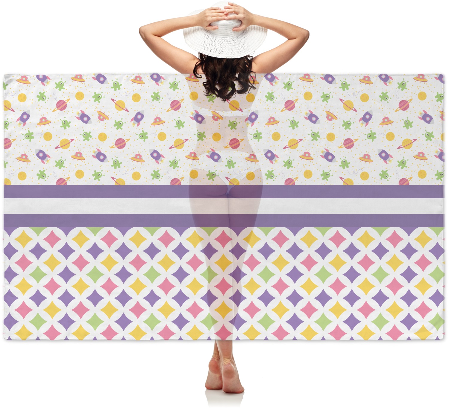 This sarong is a sheer material that can be made fabulous in so many ways. Tie it up over your whole swim suit as a cover-up or tie it around your waist to make a cute cover-up skirt. To top that, show off your style by decorating it with a personalized design!