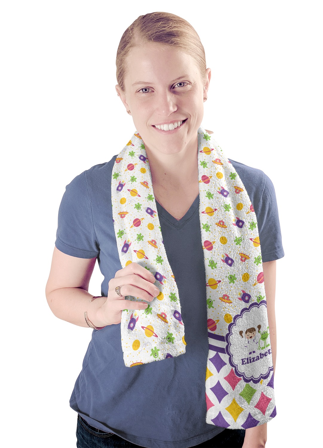 These towels are 44" x 12", which are the perfect size for hanging around your neck on the treadmill or wiping your brow after a hard workout. They are full-print towels with your very own design printed right on the front! They are perfect for soaking up moisture and are quite soft against your skin.