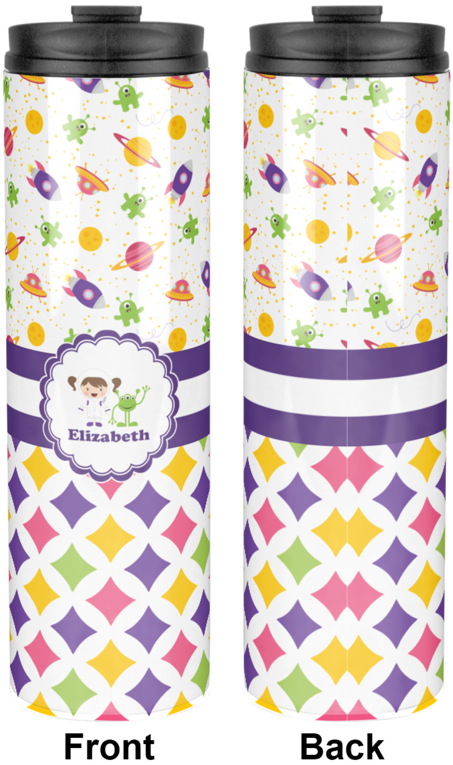 Sip your favorite drink on the go with your own custom stainless steel tumbler! Our slim cylinder shape is perfect for holding your drink in hand, in your purse, or in your backpack! This sleek and modern tumbler is a perfect gift for coffee and tea lovers keeping their drinks just the right temperature throughout the day! We offer two sizes, a 16 oz. or 20 oz., to personalize. Browse and customize or design or create your own with our online design studio!